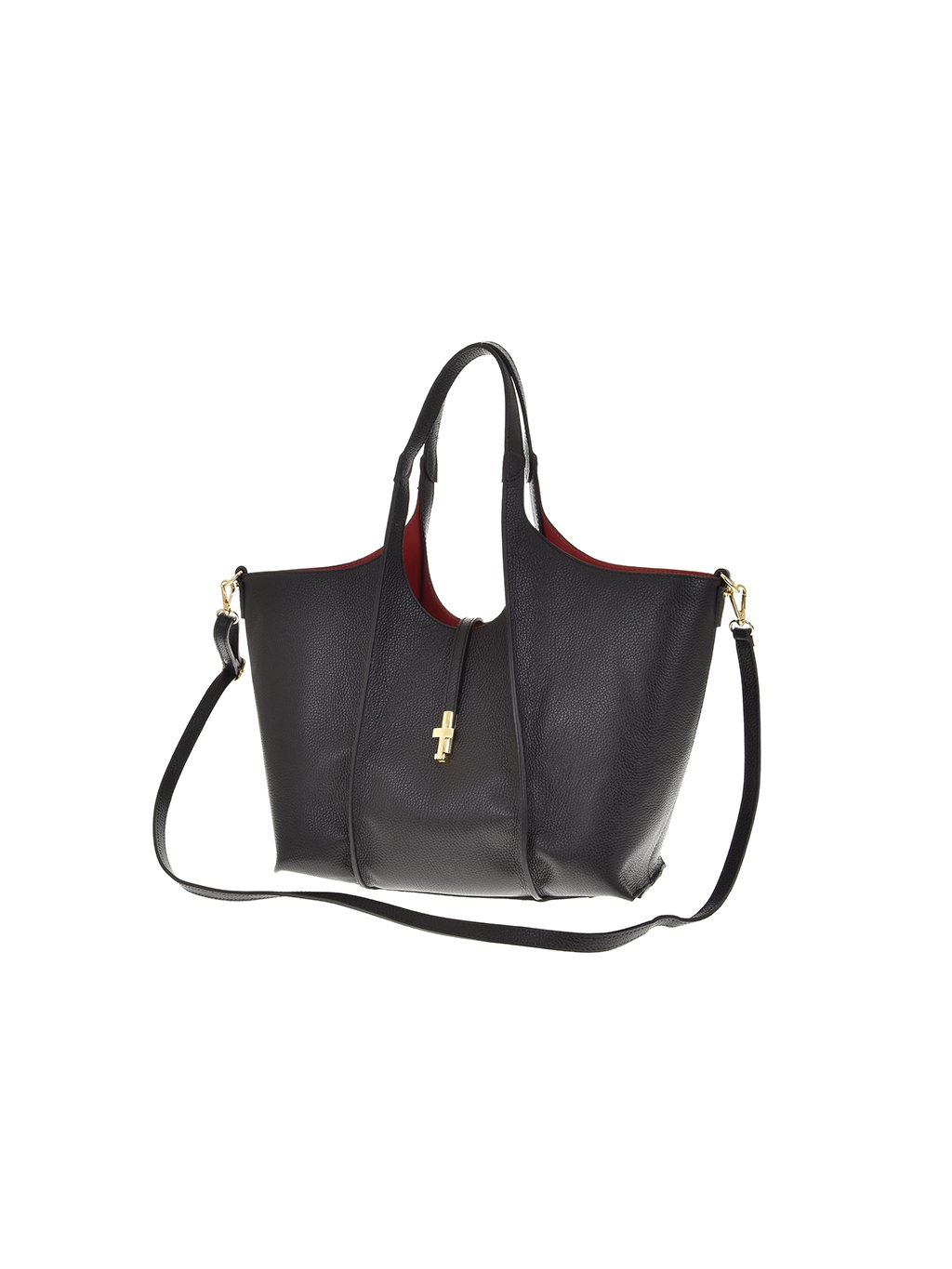- Vzrušujúci kontrast: Čierny exteriér rafinovane dopĺňa rubínovo červené vnútro, ktoré kabelke dodáva dramatický a vášnivý charakter pri každom otvorení.