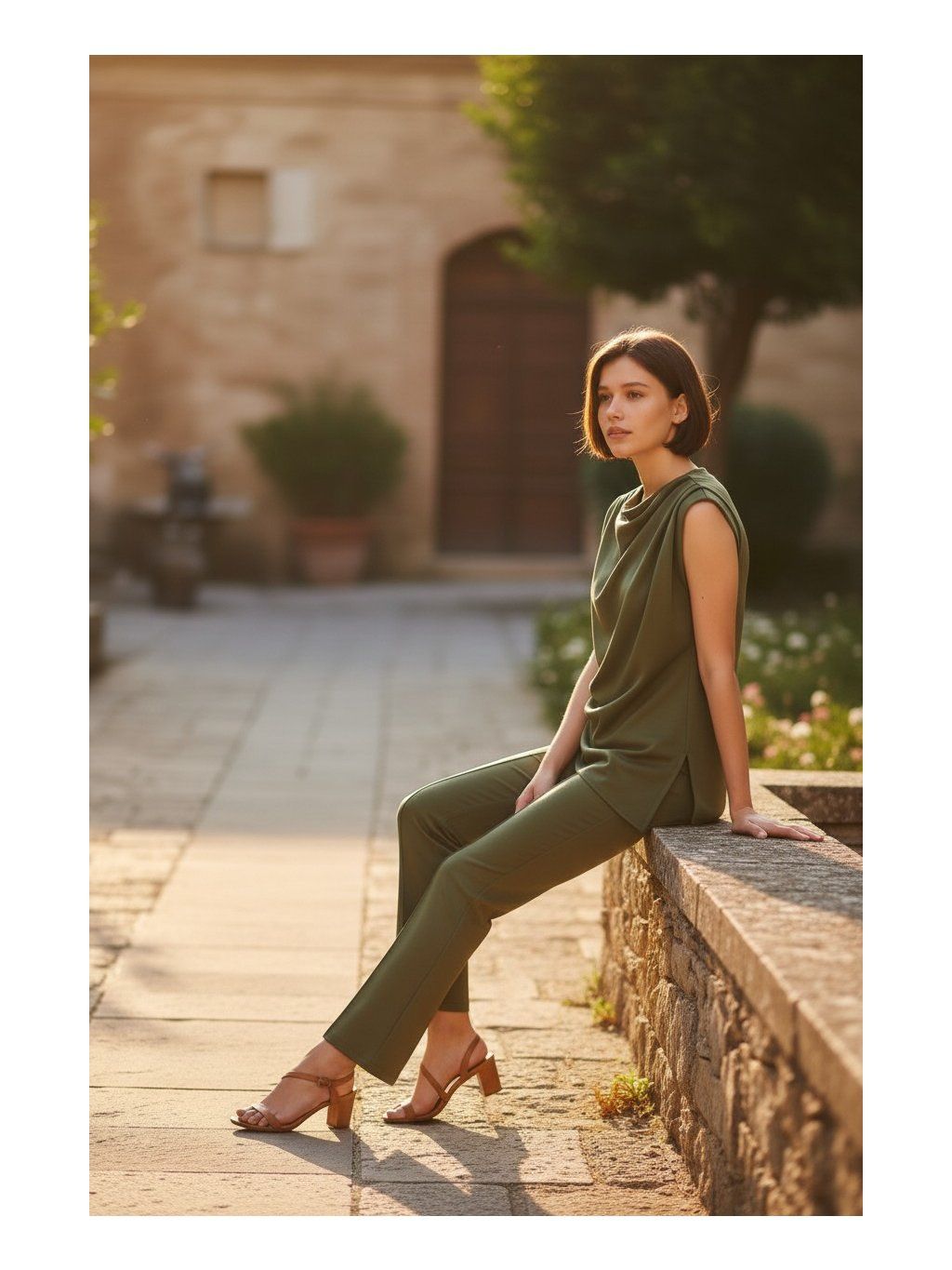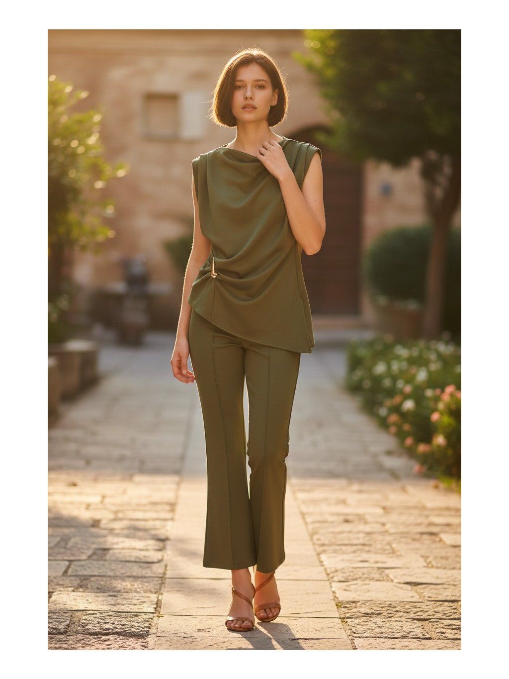 Nadčasová elegancia v modernom prevedení. Tento štýlový dámsky komplet v olivovej farbe je ideálnou voľbou pre ženy, ktoré chcú pôsobiť sebavedomo a sofistikovane pri každej príležitosti. Minimalistický dizajn dopĺňajú jemné detaily, ktoré dodávajú outfitu jedinečný charakter.