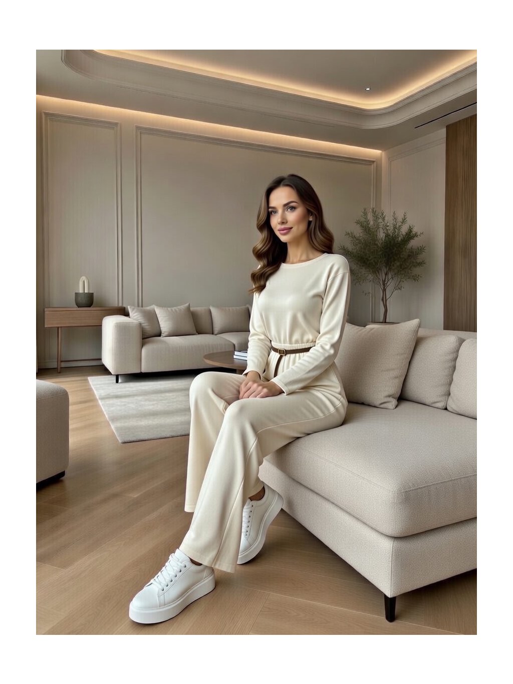 Jemné krémové dámske nohavice v modernom, ležérno-elegantnom strihu sú ideálnou voľbou na jarné a letné dni. Nohavice majú pohodlný, voľnejší rovný strih s dostatočnou dĺžkou, ktorý lichotí postave a zároveň zabezpečuje maximálny komfort pri nosení. V páse sú zakončené pružnou gumou a doplnené štýlovým opaskom na zaväzovanie, ktorý dodáva outfitu šmrnc a umožňuje prispôsobenie podľa potreby.