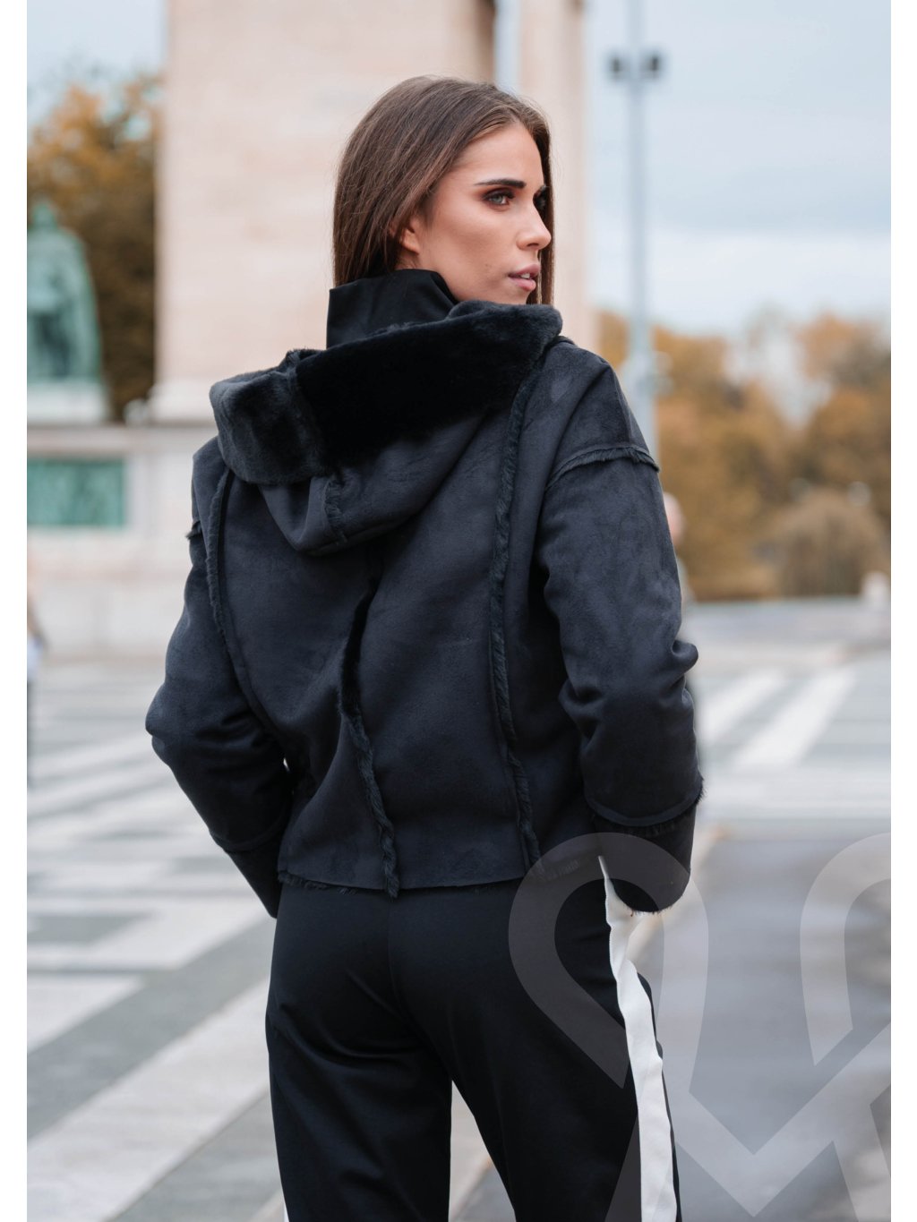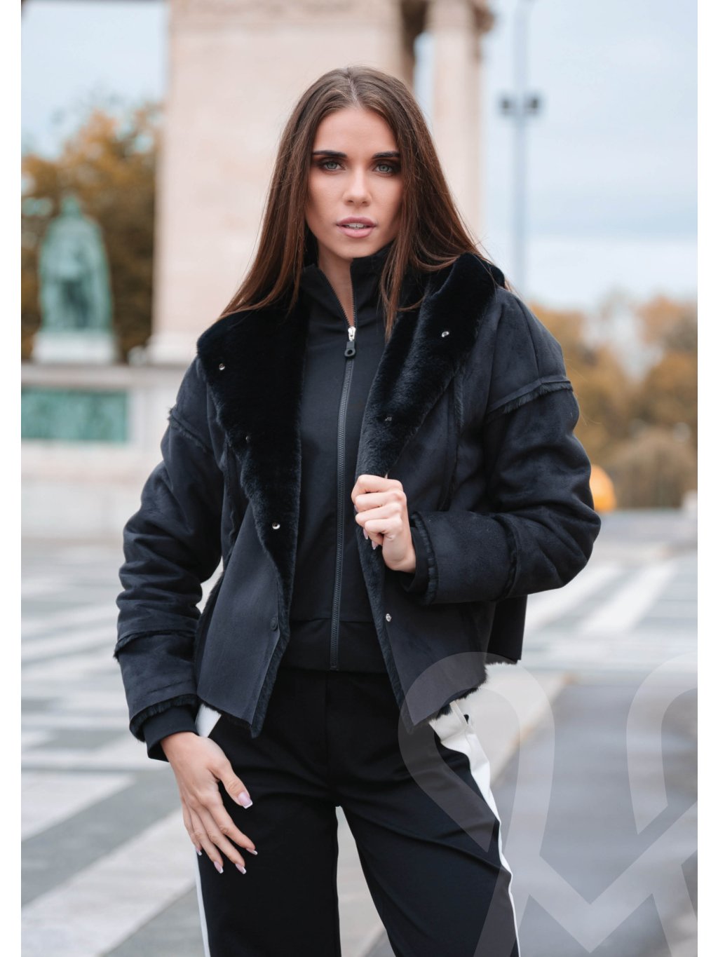 Štýlová čierna kožušinová MAGENTA bunda s moderným strihom, je dokonalou kombináciou mestského štýlu a zimného komfortu. Jej výrazný golier z mäkkej kožušiny dodáva outfitu luxusný nádych, zatiaľ čo matný povrch a krátky strih pôsobia veľmi moderne a univerzálne.Príjemná vnútorná podšívka zahreje aj v chladnejších dňoch a prepracované detaily z nej robia kúsok, ktorý zaujme na prvý pohľad. Skvelo sa hodí k športovo-elegantným outfitom, k nohaviciam aj k džínsom a je ideálnou voľbou na dynamické jesenné a zimné dni.