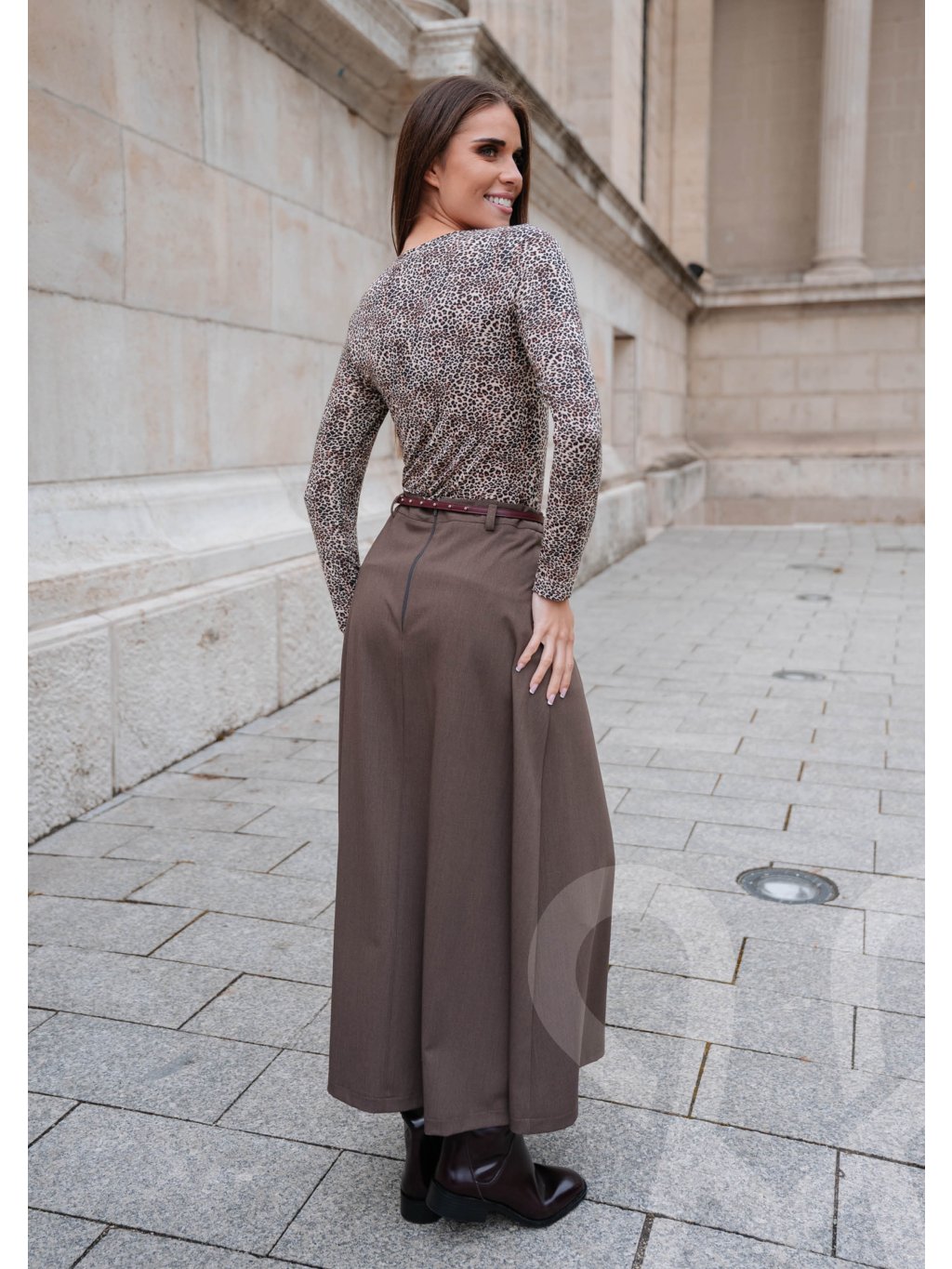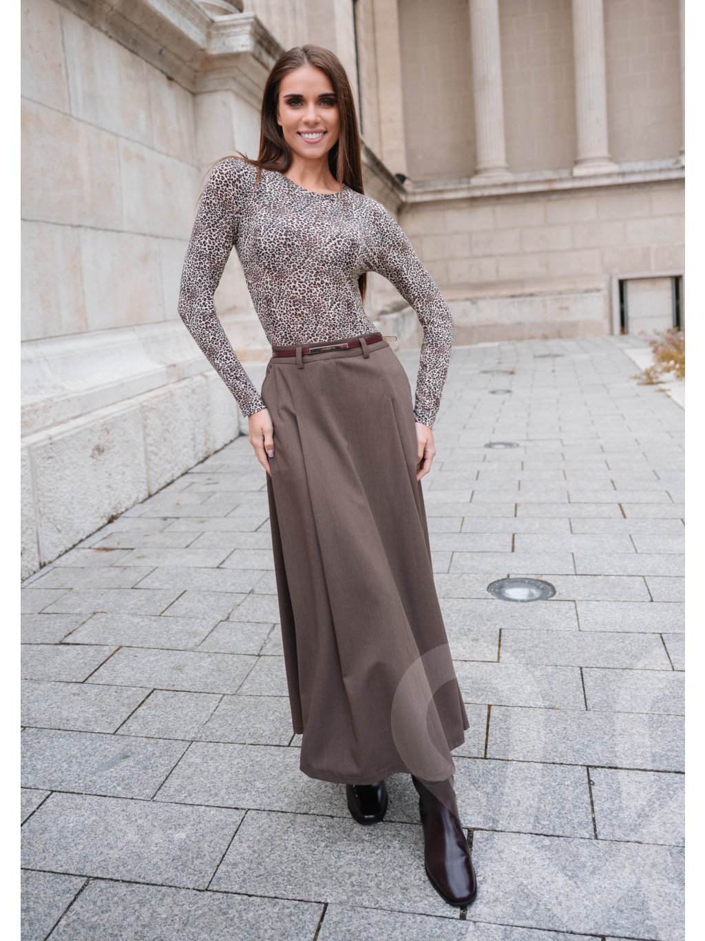 Elegantná maxi MAGENTA sukňa vo farbe FANGO predstavuje spojenie nadčasovej klasiky, komfortu a vkusnej ženskosti. Vyrobená z kvalitného, pevnejšieho materiálu krásne drží tvar a vytvára plynulú siluetu, ktorá pôsobí štíhlo a veľmi sofistikovane. Širší, splývavý strih umožňuje prirodzený pohyb a poskytuje pohodlie počas celého dňa, či už ide o pracovné povinnosti, stretnutia alebo spoločenské príležitosti. Vysoký pás spolu s decentným opaskom podčiarkuje ženské krivky a opticky predlžuje postavu. Táto sukňa je dokonale kombinovateľná – elegantná s blúzkou či rolákom, štýlová s jednoduchým topom a vhodná aj na vrstvenie so sakom či kabátom. Ide o univerzálny kúsok, ktorý v šatníku nikdy nevyjde z módy.