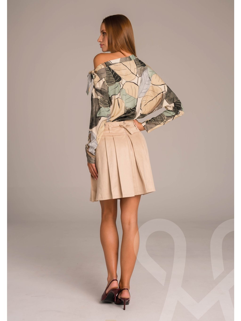 Elegantná MAGENTA sukňa béžovej farby, vpredu široko skladaná, čo jej pridáva na elegancii a sofostikovanosti. Skvele ladí s blúzkou alebo topmi. Vhodná do práce, na neformálne stretávky alebo na spoločenské udalosti s ľahkými doplnkami.