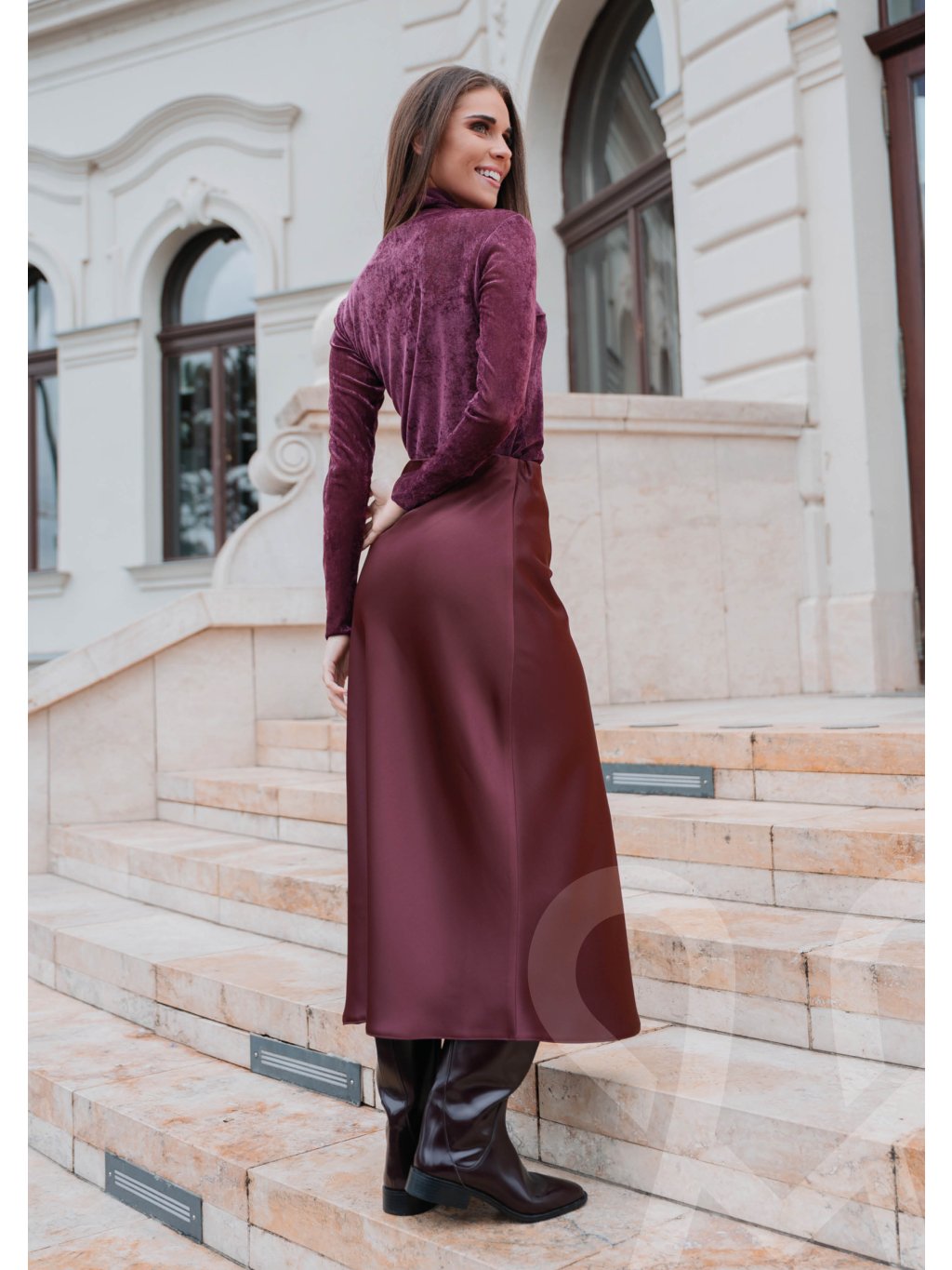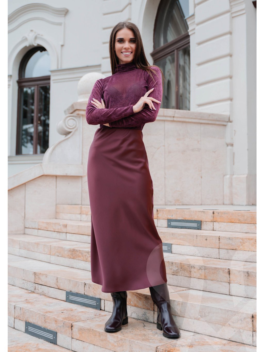 Saténová MAGENTA midi sukňa v odtieni slivky.