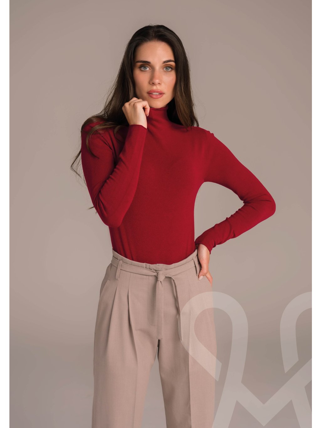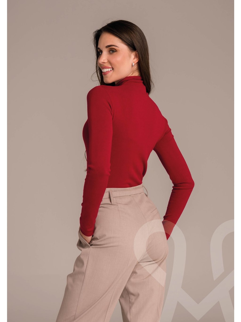 Elegantné body Magenta v odvážnej červenej farbe je dokonalým spojením ženskosti, štýlu a pohodlia. Priliehavý strih krásne zvýrazní postavu, zatiaľ čo jemný, elastický materiál sa príjemne prispôsobí telu a zaručí komfort po celý deň. Rolák dodáva modelu sofistikovaný nádych a robí z neho ideálny kúsok na chladnejšie dni.