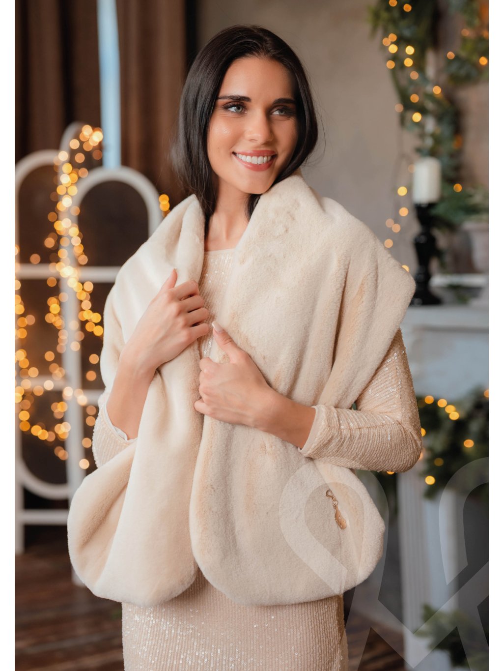 Toto luxusné krémové bolero je dokonalým doplnkom k elegantným šatám či večerným outfitom počas chladnejších dní. Je vyrobené z mimoriadne hebkého, hustého kožušinového materiálu, ktorý pôsobí exkluzívne a zároveň poskytuje príjemné teplo. Jeho bohatý golier krásne obopína ramená a vytvára sofistikovaný, noblesný vzhľad. Jemný odtieň krémovej farby lahodne ladí so svetlými aj tmavými outfitmi a dodáva im slávnostný nádych. Bolero je ideálne na svadby, plesy, zimné oslavy či akékoľvek výnimočné udalosti, kde chcete pôsobiť elegantne, jemne a žensky.