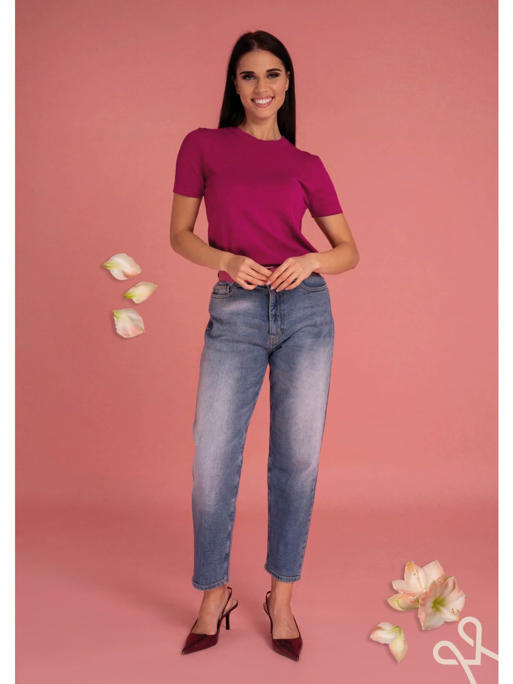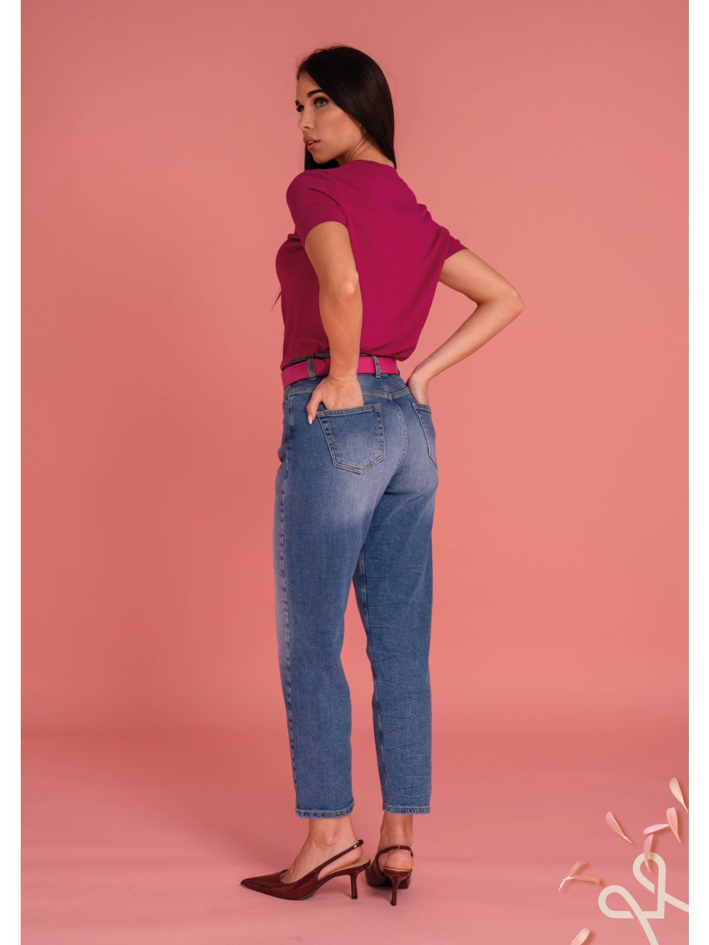 Dámske MAGENTA džínsy v klasickom modrom odtieni predstavujú nadčasový kúsok, ktorý by nemal chýbať v žiadnom šatníku. Strih s vyšším pásom krásne tvaruje postavu, zvýrazňuje pás a zároveň poskytuje pohodlie počas celého dňa. Rovné nohavice pôsobia moderne a lichotivo predlžujú siluetu.Kvalitný denim s jemným vyšúchaným efektom dodáva nohaviciam ležérny charakter, vďaka čomu sú ideálne na každodenné nosenie. Praktické predné a zadné vrecká spolu s klasickým zapínaním podčiarkujú ich univerzálnosť a funkčnosť.Džínsy sa jednoducho kombinujú s tričkom, blúzkou aj sakom – vytvoríte s nimi nenútený mestský outfit aj elegantnejší look doplnený lodičkami. Perfektná voľba pre ženy, ktoré hľadajú štýl, pohodlie a všestrannosť v jednom kúsku.