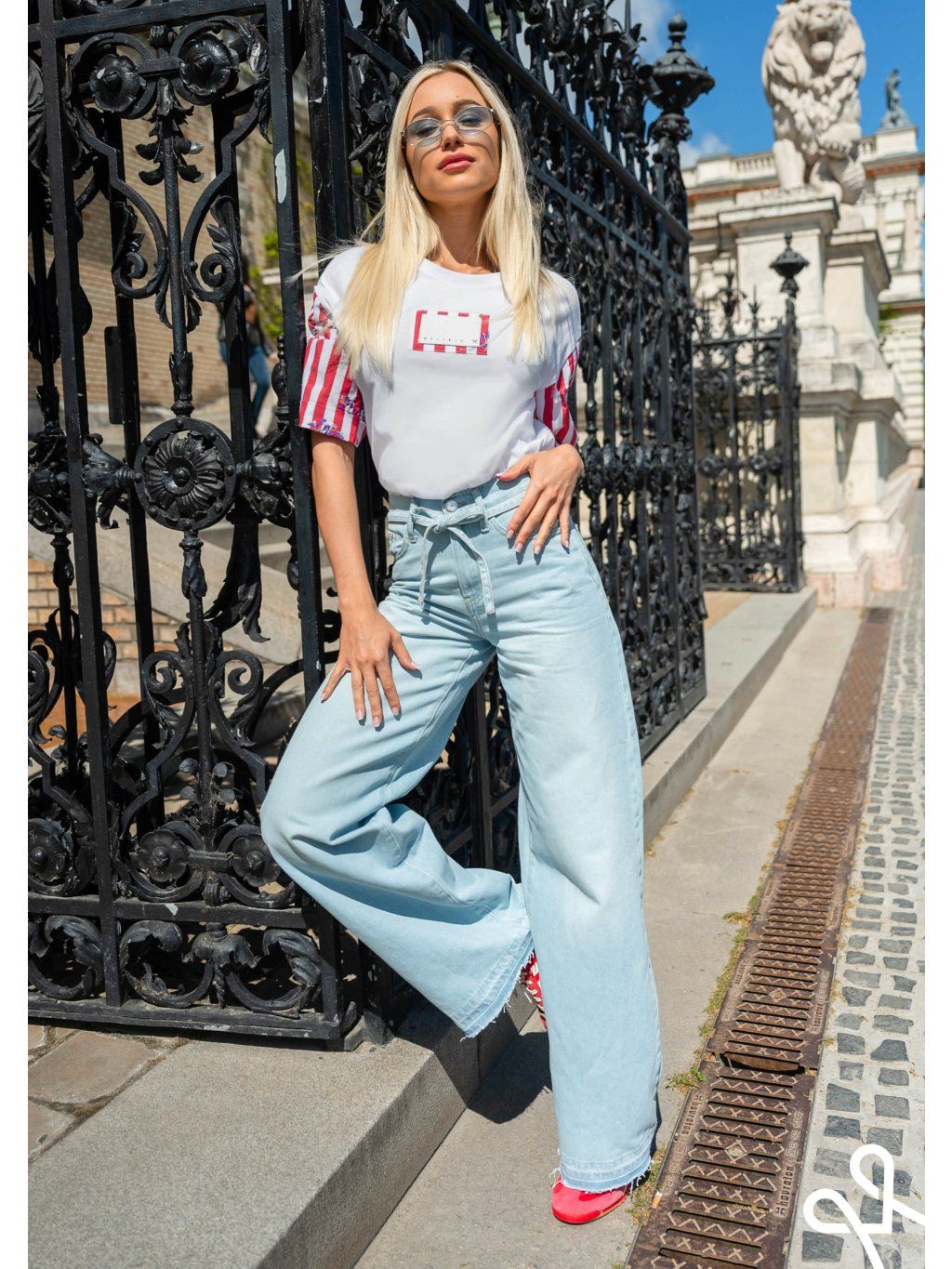 Vyšší pás so šnúrkou na zaväzovanie zabezpečuje komfortné nosenie a zároveň umožňuje prispôsobiť si nohavice podľa potreby. Voľný, široký strih dodáva modelu uvoľnený charakter a poskytuje maximálnu voľnosť pohybu. Jemne surový spodný lem pridáva nohaviciam moderný, mierne rebelský detail.