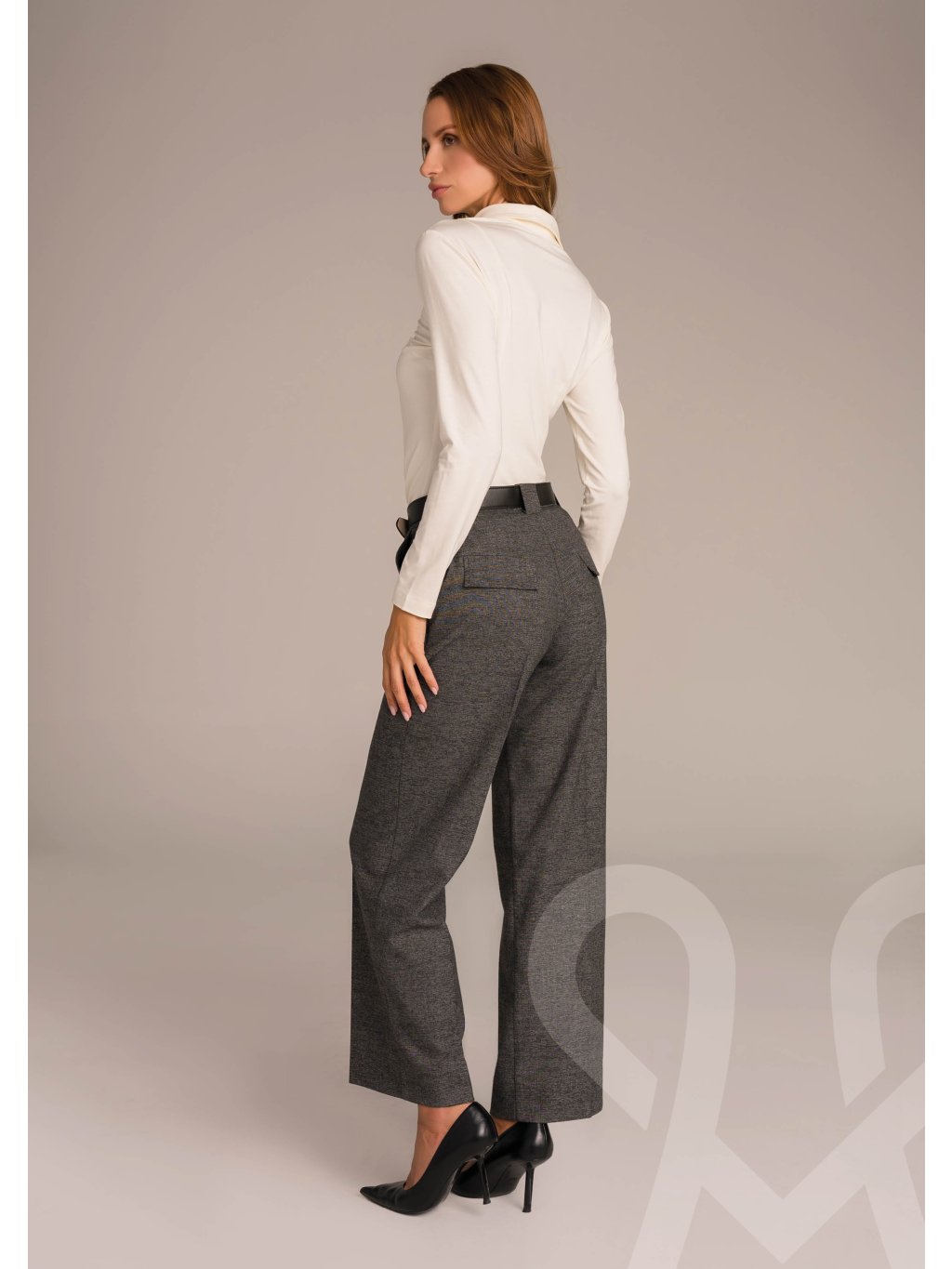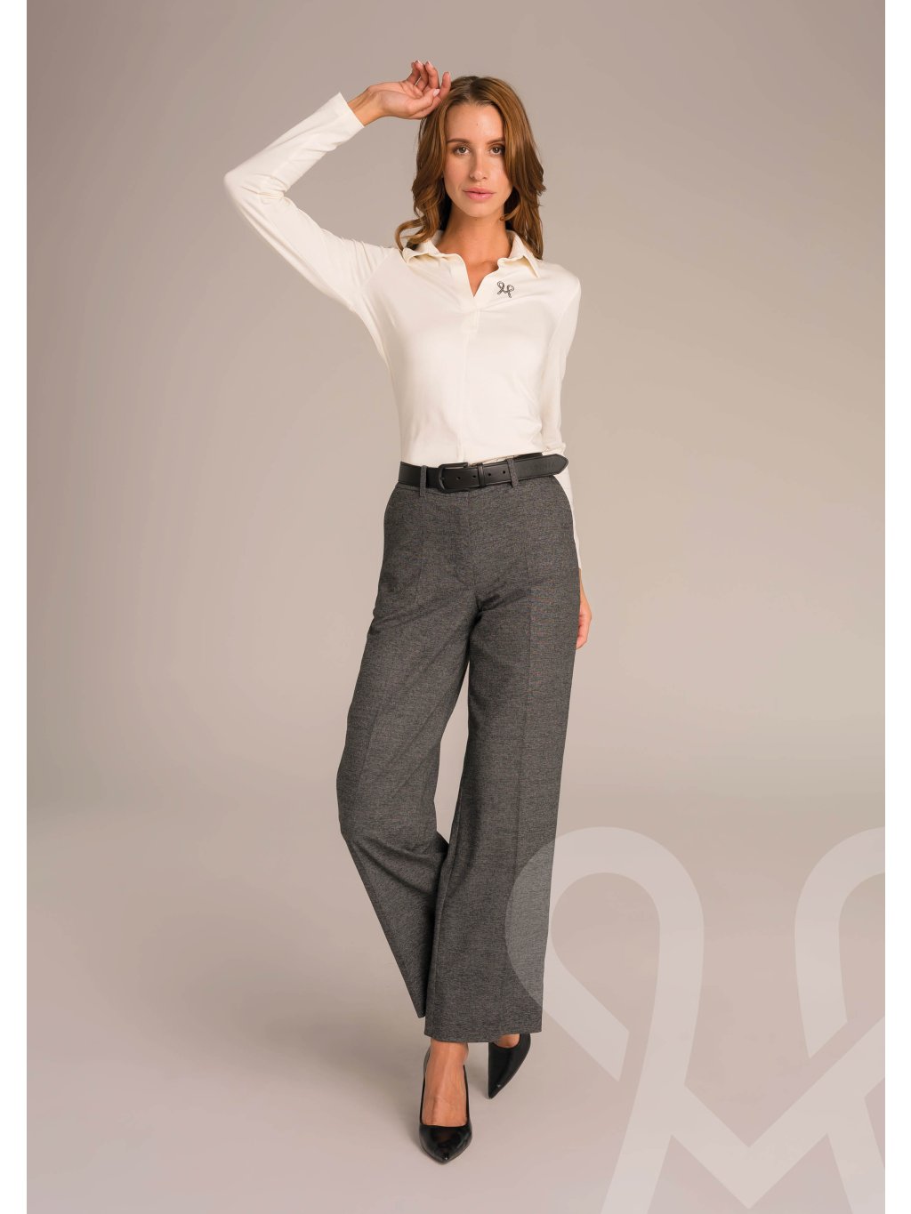 Dámske MAGENTA nohavice v sivej farbe s jemnou textúrou, ktoré pôsobia elegantne a nadčasovo. Majú rovný, mierne rozšírený strih, ktorý opticky predlžuje postavu a dodáva outfitu sofistikovaný vzhľad. Nohavice sú ušité z príjemného, mierne elastického materiálu, ktorý zaručuje pohodlie počas celého dňa a zároveň si zachováva tvar. V páse majú pútka na opasok a zapínanie na zips s gombíkom, čo zvýrazňuje ich klasický charakter. Ich univerzálny dizajn umožňuje ľahkú kombináciu – skvelo sa hodia k elegantnej blúzke, košeli aj jednoduchému tričku. Sú ideálne do práce, na pracovné stretnutia alebo do mesta, keď chcete pôsobiť upravene a štýlovo bez kompromisov v pohodlí.