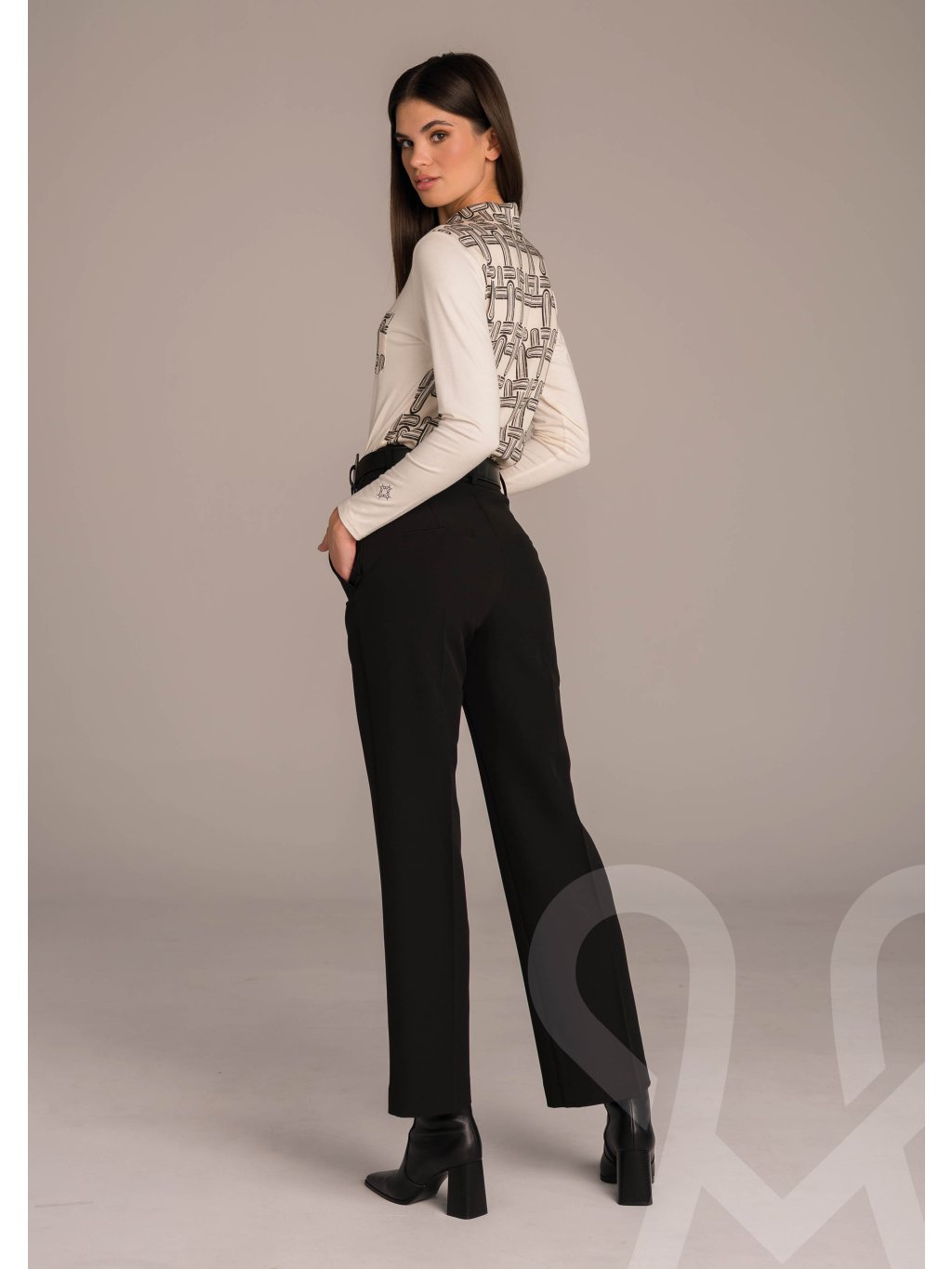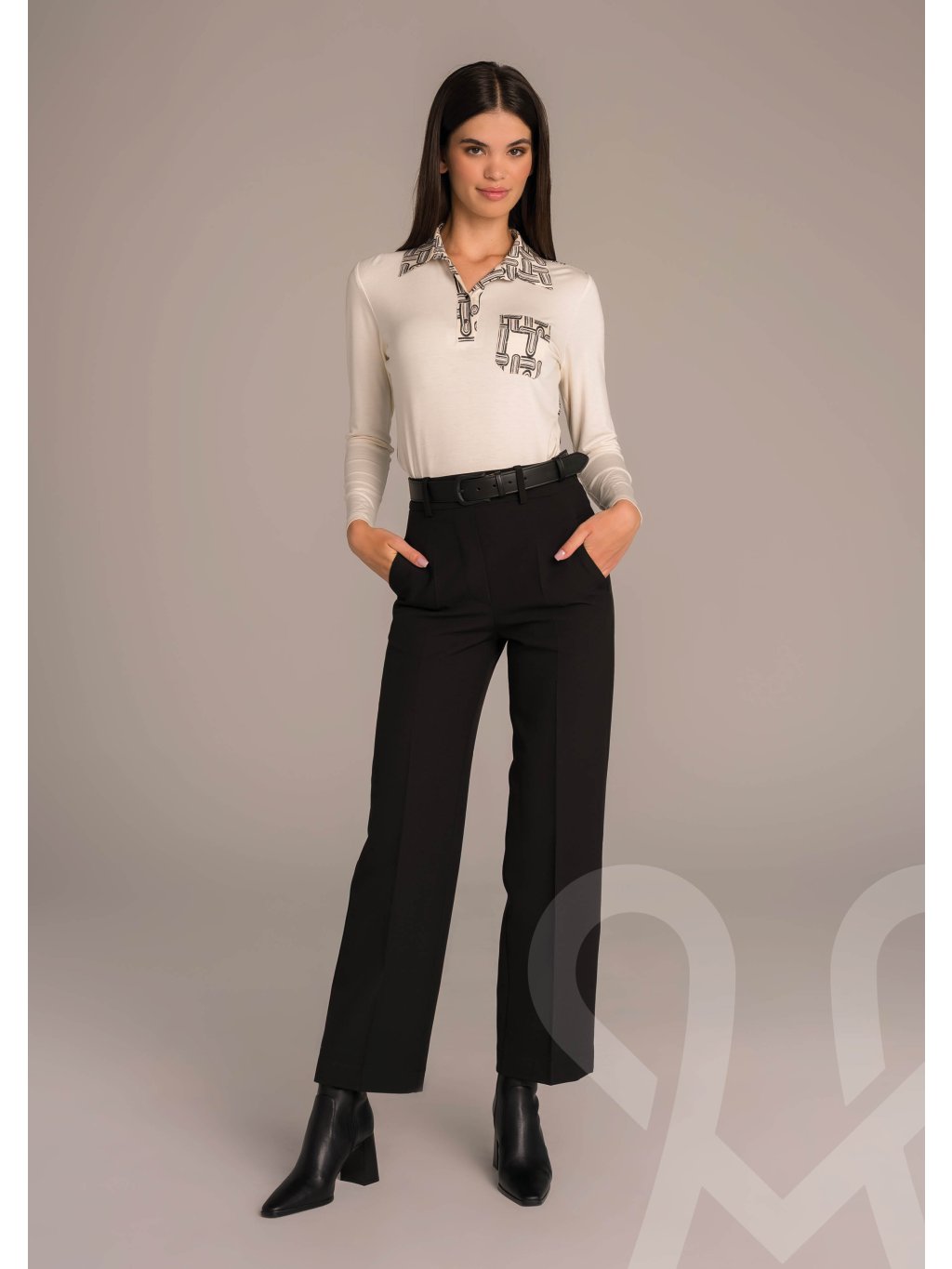 Elegantné čierne MAGENTA nohavice sú elegantné a praktické, vhodné na pracovný deň aj na spoločenské príležitosti.Rovný strih a vysoký pás vytvárajú dlhší vzhľad postavy.
