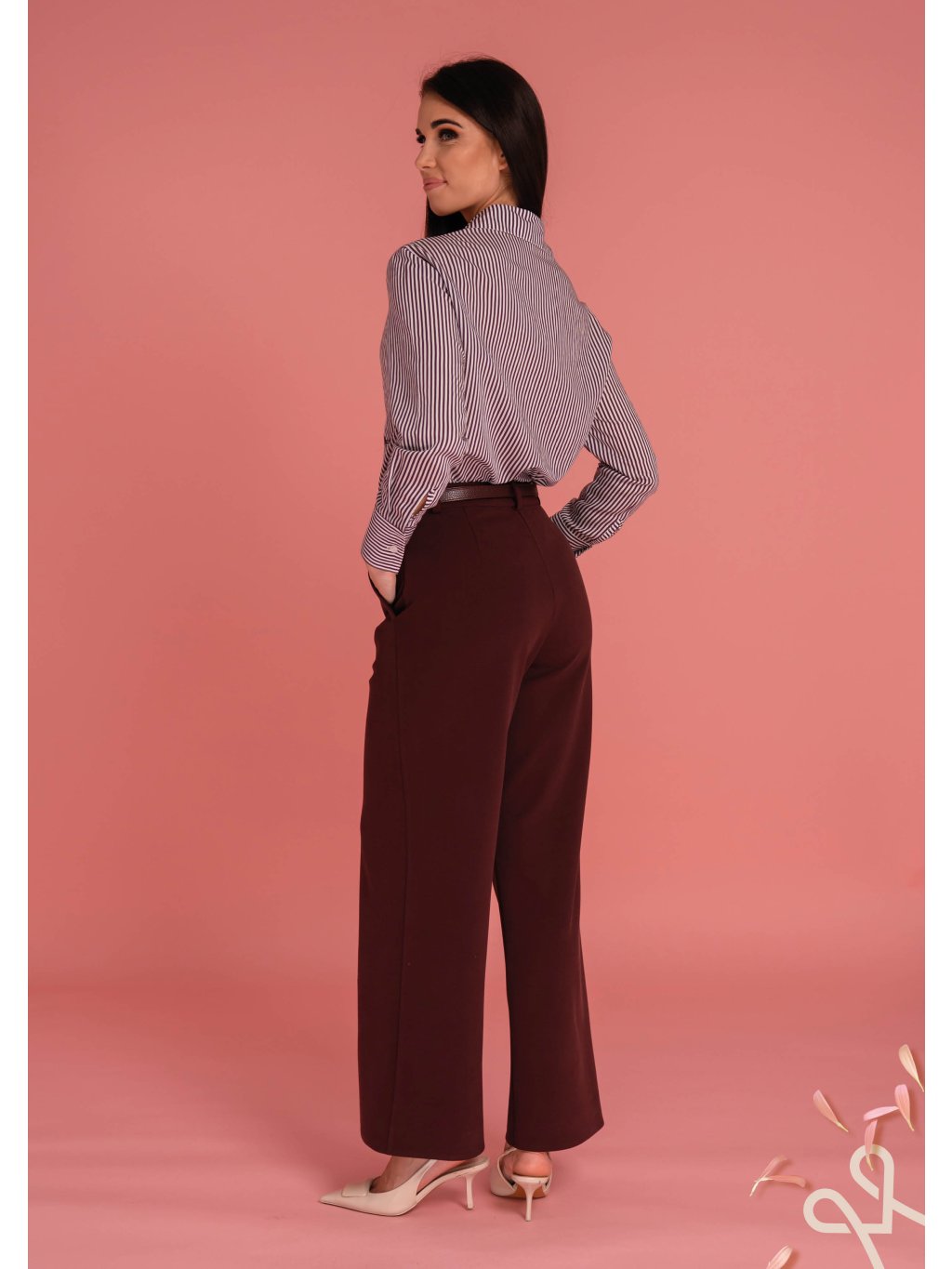 Elegantné dámske MAGENTA nohavice v hlbokom bordovom odtieni sú ideálnou voľbou pre ženy, ktoré chcú spojiť sofistikovanosť s pohodlím. Vysoký pás krásne zvýrazní siluetu a opticky predĺži nohy, zatiaľ čo široké nohavice vytvárajú plynulú, ženskú líniu a dodávajú outfitu moderný charakter.Kvalitný, pevnejší materiál drží tvar a pôsobí upravene počas celého dňa. Nohavice sú doplnené opaskom, ktorý zvýrazňuje pás a zároveň dotvára celkový elegantný vzhľad. Vďaka svojmu strihu sa hodia do práce, na formálne stretnutia aj na spoločenské príležitosti.Perfektne sa kombinujú s košeľou, blúzkou či priliehavým topom a v spojení s lodičkami vytvoria nadčasový, sebavedomý outfit.