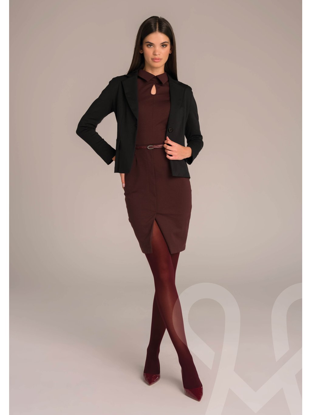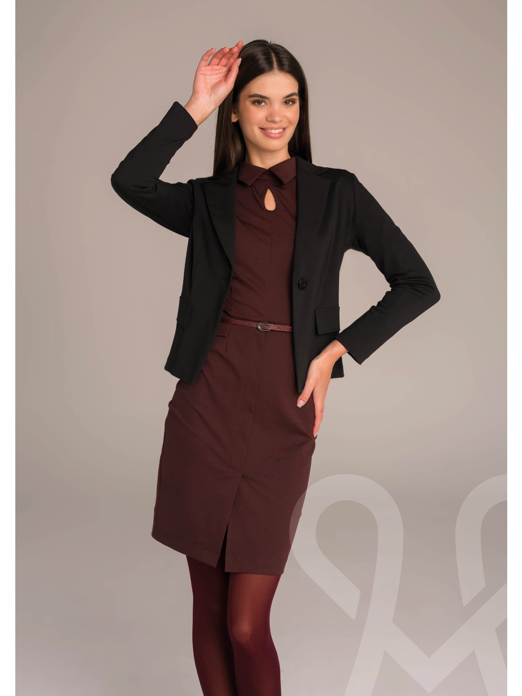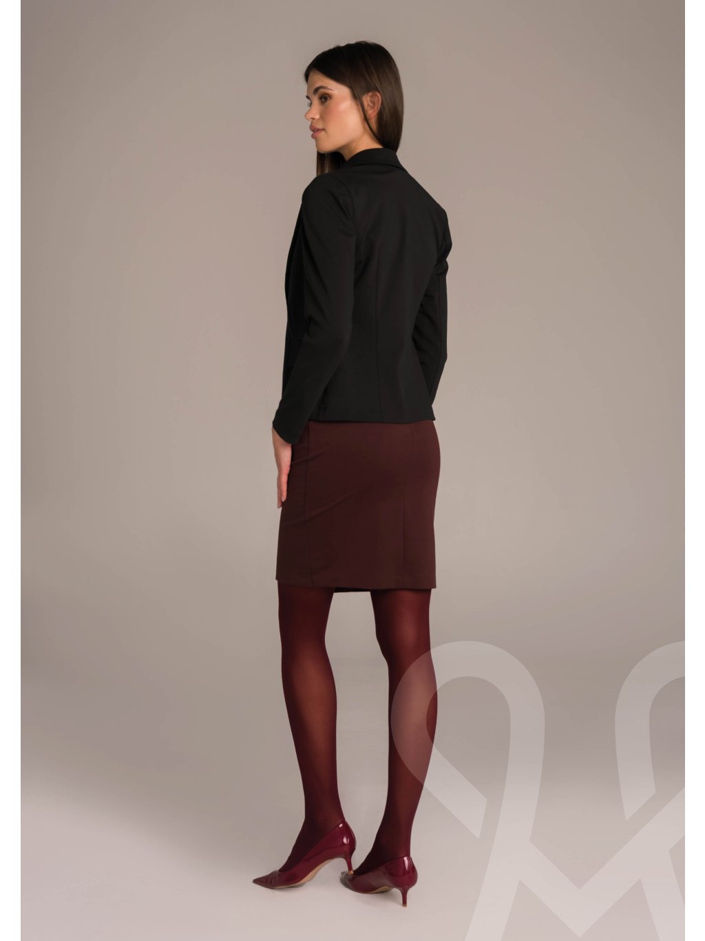 Elegantné MAGENTA dámske sako čiernej farby, so štíhlym priliehavým strihom, ktorý pekne tvaruje postavu. Má klasický dizajn s reverzmi (límcom), dlhými rukávmi a zapínaním na jeden gombík vpredu. Po stranách sú naznačené vrecká s klopami, ktoré mu dodávajú formálny vzhľad. Tento typ saka je univerzálny – hodí sa na formálne príležitosti, do práce či na obchodné stretnutia, no zároveň sa dá kombinovať aj s ležérnejšími kúskami na elegantný, ale uvoľnený štýl.