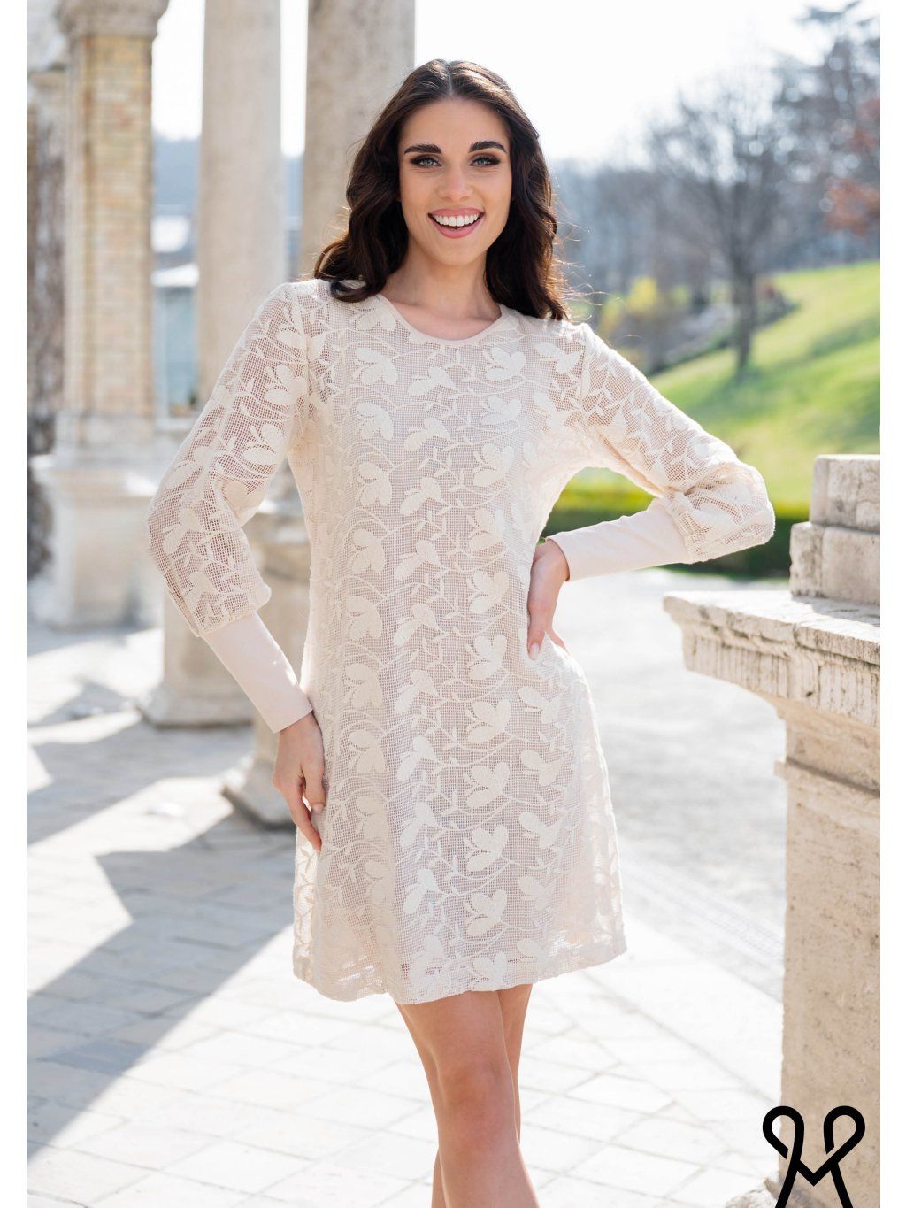 Elegantné dámske MAGENTA šaty v jemnom krémovom odtieni sú dokonalou voľbou pre ženy, ktoré milujú nadčasový štýl a ženskosť. Vyrobené z ľahkého materiálu s čipkovaným vzorom, ktorý pôsobí romanticky a sofistikovane zároveň. Rovný strih lichotí postave a zabezpečuje pohodlie pri nosení, zatiaľ čo dlhé rukávy dodávajú modelu eleganciu. Šaty sú ideálne na spoločenské príležitosti, oslavy aj bežné nosenie, keď chcete pôsobiť štýlovo a upravene.