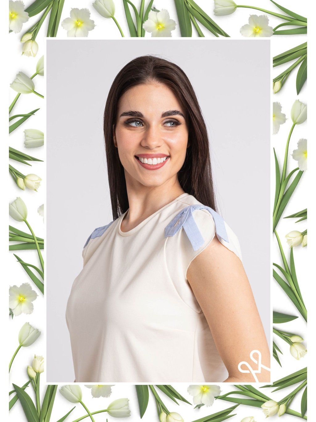 - Pastelový akcent: Unikátne svetlomodré mašle na ramenách dodávajú šatám dievčenský šarm a vytvárajú jemný farebný kontrast, ktorý okamžite upúta pozornosť.