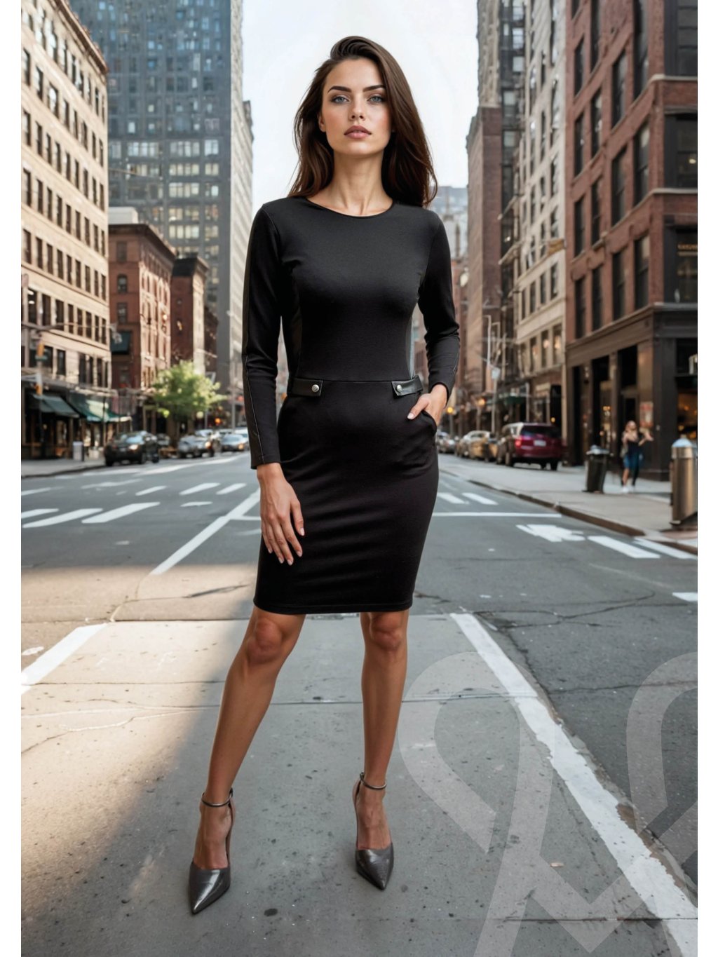 • Materiál: Hladká, mierne elastická tkanina, ktorá sa prispôsobuje postave a zachováva elegantnú siluetu.