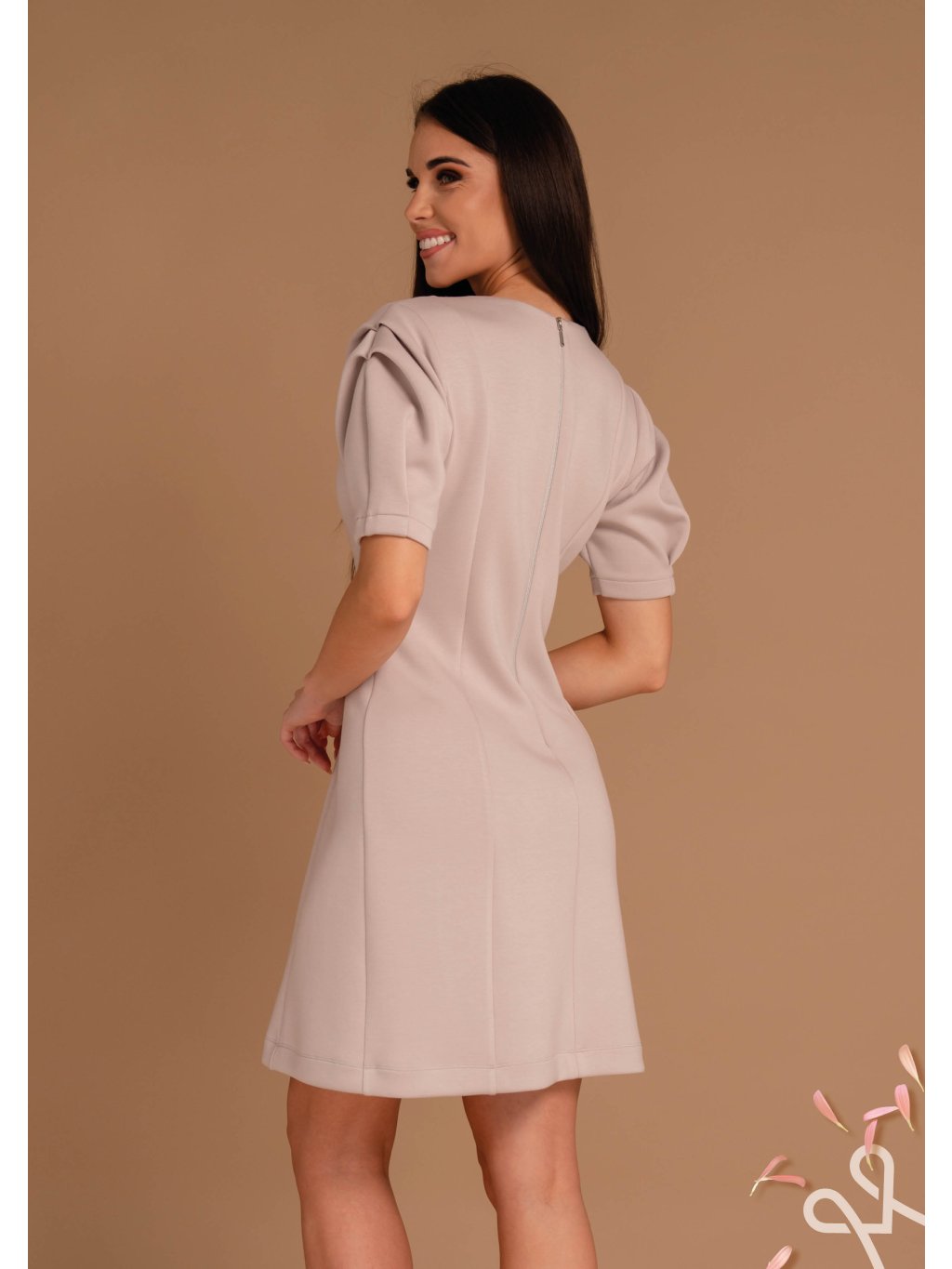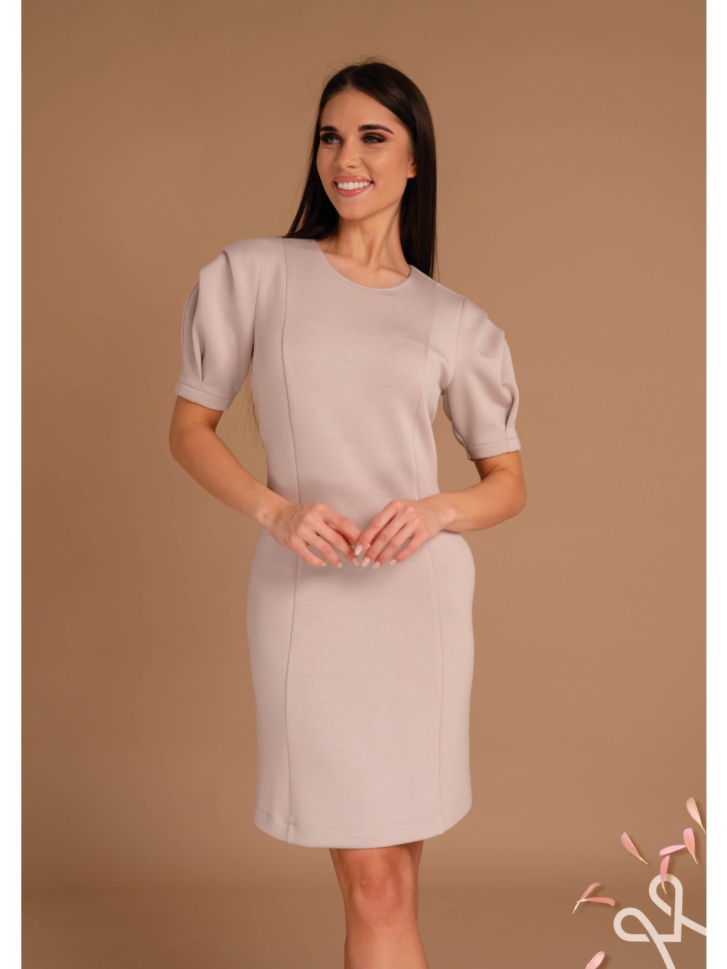 Elegantné puzdrové MAGENTA šaty v jemnom béžovom odtieni pôsobia žensky a nadčasovo. Priliehavý strih krásne zvýrazňuje siluetu, zatiaľ čo krátke rukávy s jemným riasením na ramenách dodávajú modelu sofistikovaný detail. Šaty sú ideálne do práce, na spoločenské príležitosti aj formálnejšie stretnutia.