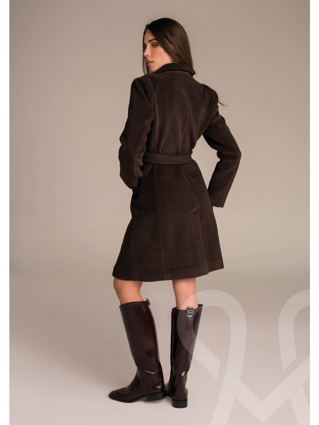 Tento elegantný kabát v tmavohnedom odtieni je nadčasovým kúskom, ktorý by nemal chýbať v ženskom šatníku. Klasický strih s opaskom v páse krásne zvýrazní siluetu, zatiaľ čo mäkký materiál poskytne príjemné teplo a komfort počas chladnejších dní.Decentné zapínanie na gombík a čisté línie dodávajú kabátu sofistikovaný vzhľad. Skvelo sa kombinuje s elegantnými šatami, nohavicami aj čižmami – ideálny na každodenné nosenie aj výnimočné príležitosti.