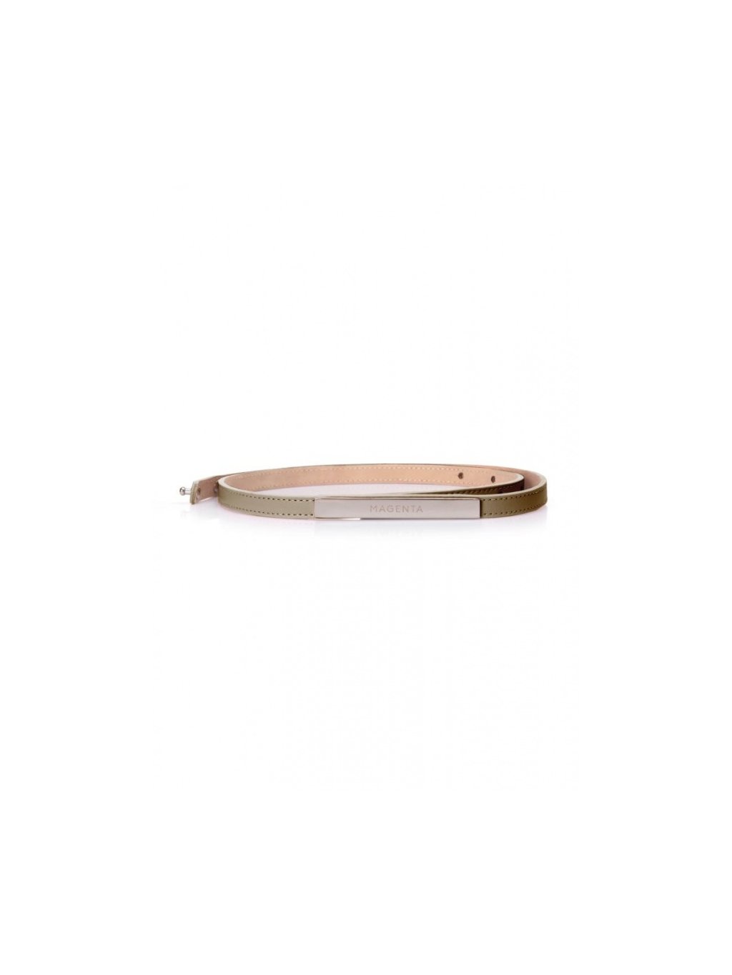 Tenký opasok z pravej kože vo farbe fango. Dá sa kombinovať s akýmkoľvek outfitom na akúkoľvek príležitosť. Celková dĺžka opasku: 85 cm, nastaviteľná v siedmich bodoch: 68 cm, 70 cm, 72 cm, 75 cm, 77 cm, 80 cm, 83 cm. Šírka pásu: 1 cm