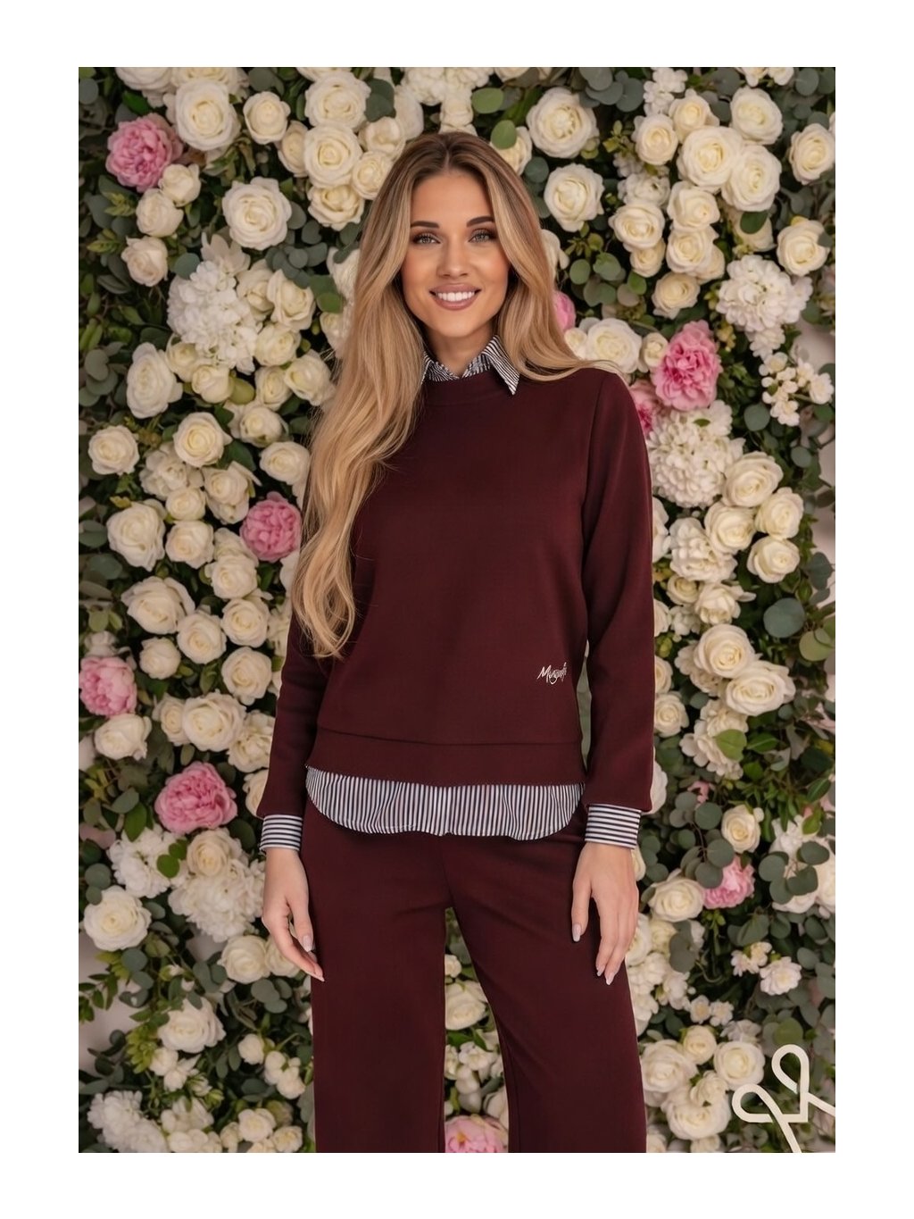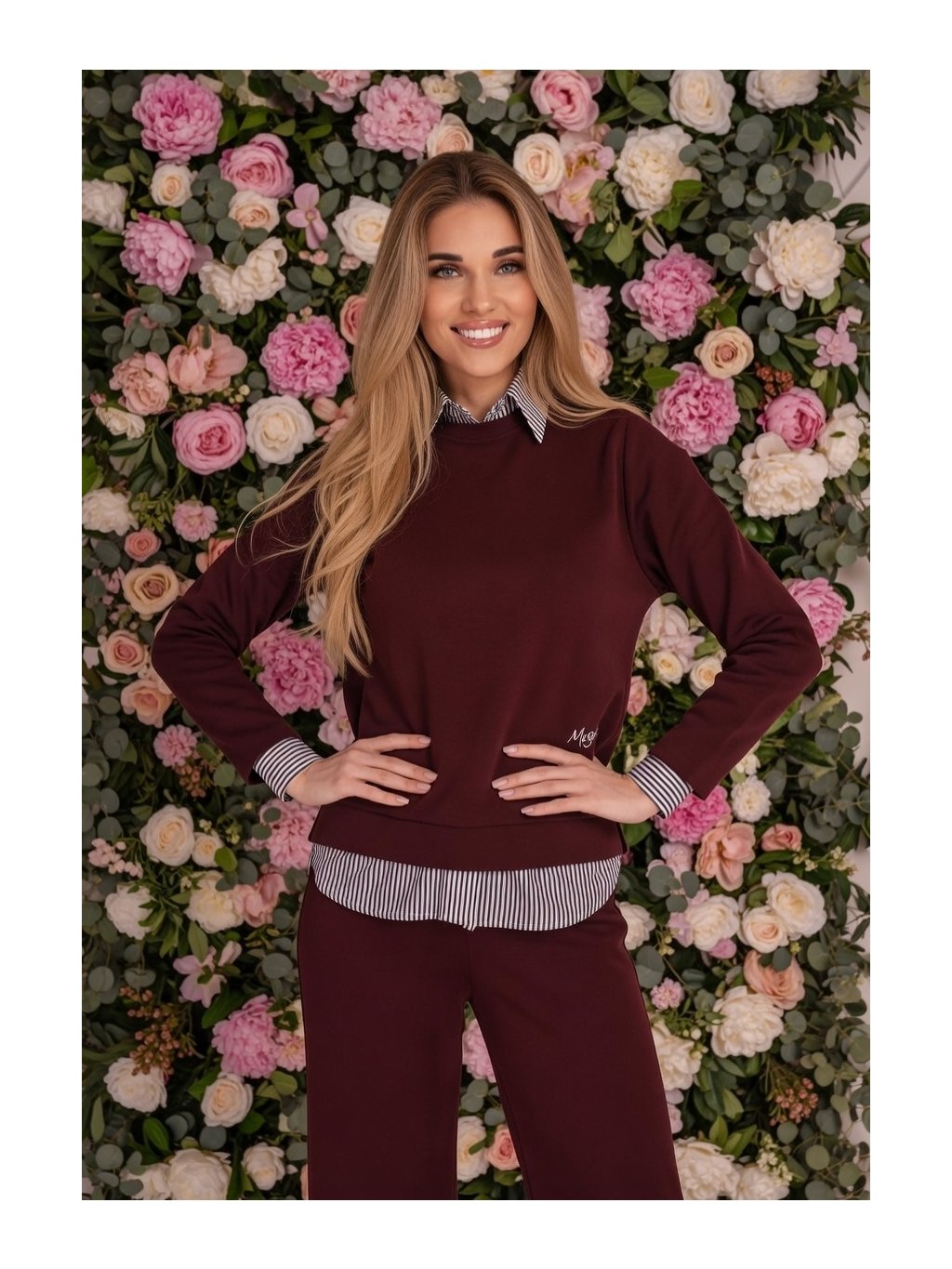 Dámsky MAGENTA top v elegantnom bordovom odtieni predstavuje dokonalé spojenie športovej elegancie a sofistikovaného detailu. Na prvý pohľad zaujme vrstveným efektom – spodná časť a manžety s jemným pruhovaným vzorom vytvárajú dojem košele pod mikinou, čím dodávajú outfitu originálny a upravený vzhľad bez nutnosti kombinovania viacerých kúskov.Minimalistický strih s okrúhlym výstrihom pôsobí čisto a nadčasovo, zatiaľ čo kvalitný, príjemný materiál zabezpečuje pohodlie počas celého dňa. Bordová farba dodáva modelu hĺbku a eleganciu, vďaka čomu je ideálny do práce aj na voľný čas.Top sa skvele kombinuje s elegantnými nohavicami aj džínsami a vytvára moderný, sebavedomý outfit s jemným módnym akcentom.