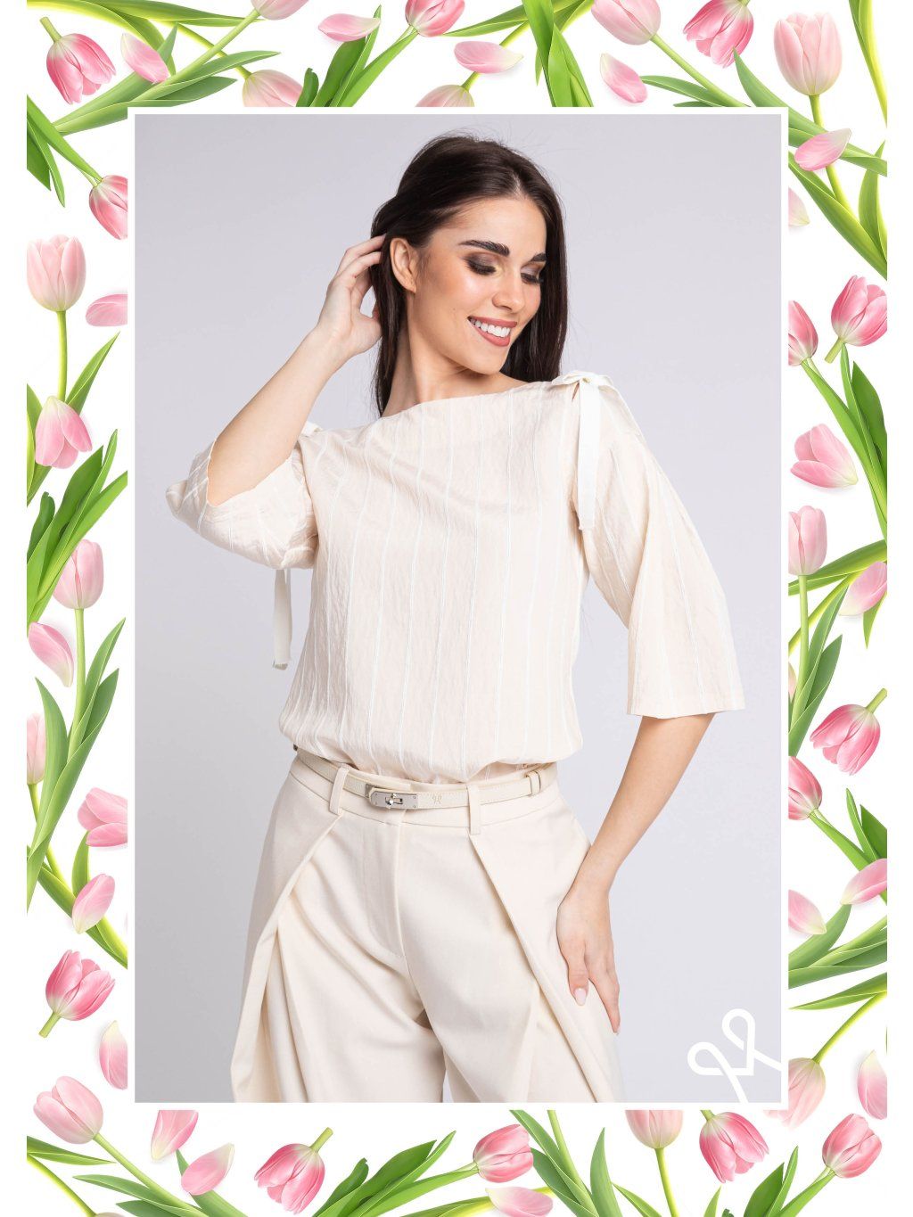 Tento top značky MAGENTA pôsobí elegantne, žensky a zároveň moderne minimalisticky. Má jemný krémový odtieň, ktorý pôsobí veľmi sofistikovane a ľahko sa kombinuje s rôznymi kúskami oblečenia. Strih je voľnejší, pohodlný, s dôrazom na čisté línie a nenápadné detaily – napríklad viazanie na ramenách dodáva kúsku jemnú romantickosť. Materiál vyzerá ľahko a vzdušne, čo z neho robí ideálnu voľbu na teplejšie dni alebo vrstvenie. Celkový dojem je decentný, nadčasový a vhodný tak na bežné nosenie, ako aj na elegantnejšie príležitosti.