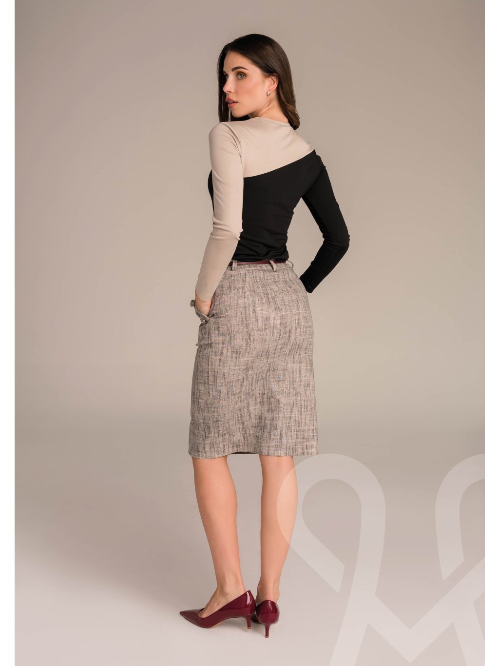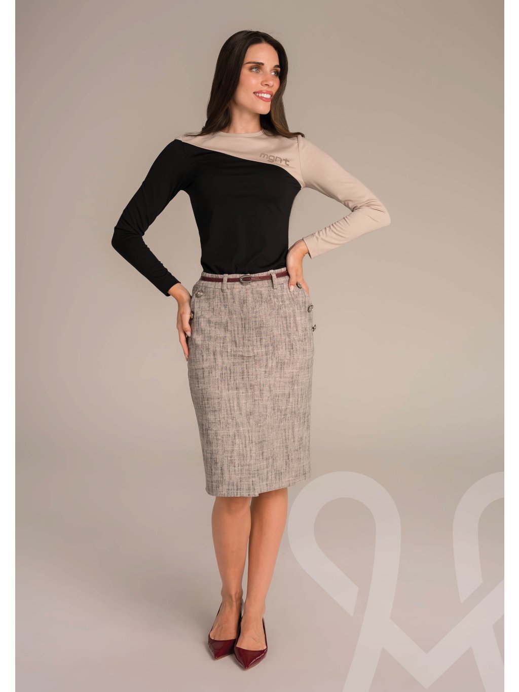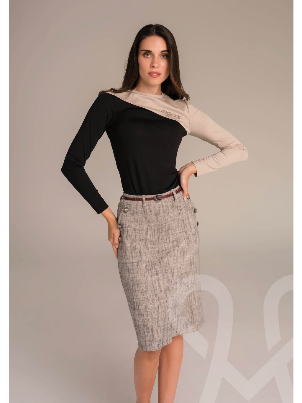Dámsky MAGENTA top v modernom dvojfarebnom prevedení, ktorý spája eleganciu s ležérnym štýlom. Top je vyrobený z jemného, elastického materiálu, ktorý sa príjemne prispôsobí postave a poskytuje celodenný komfort. Horná časť a jeden rukáv sú v kontrastnej béžovej farbe, zatiaľ čo zvyšok topu je čierny, čo vytvára originálny a výrazný vizuálny efekt. Na hrudi je umiestnené jemné logo “mgnt”, ktoré dotvára moderný vzhľad modelu. Strih je priliehavý a ženský, ideálny na kombinovanie so sukňou, nohavicami či sakom. Tento kúsok je skvelou voľbou pre ženy, ktoré hľadajú štýlový, ale zároveň pohodlný top na bežné nosenie aj do práce.