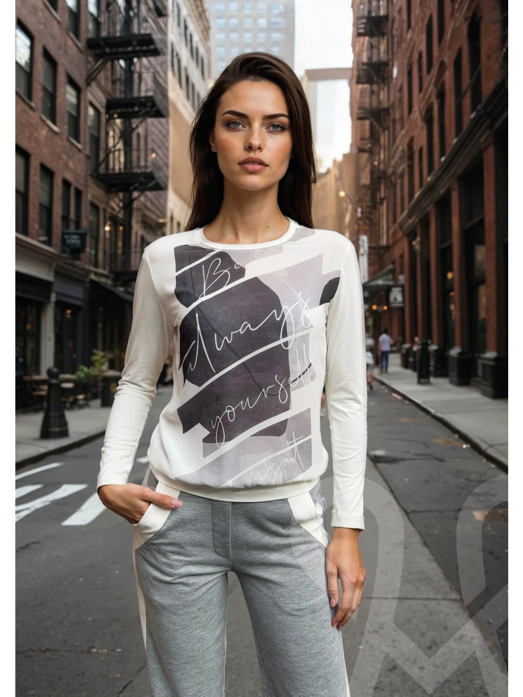 Tento štýlový MAGENTA top s dlhým rukávom spája moderný dizajn a pohodlie v jednom. Jemný materiál sa príjemne prispôsobí postave, zatiaľ čo originálna potlač s nápisom “Be always yourself” dodáva modelu osobitý a sebavedomý charakter. Neutrálne odtiene bielej, sivej a čiernej umožňujú jednoduché kombinovanie – skvelo sa hodí k džínsom, elegantným nohaviciam aj teplákovým súpravám.