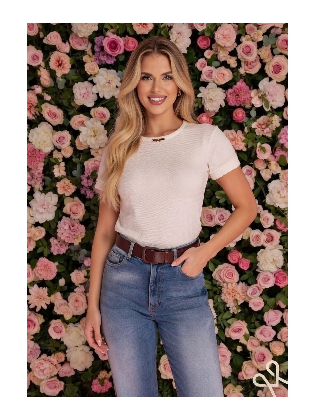 MAGENTA dámsky top v jemnom smotanovom odtieni zaujme na prvý pohľad svojou výraznou štruktúrou materiálu. Povrch s decentným plastickým vzorom dodáva modelu hĺbku a sofistikovaný charakter, vďaka čomu nepôsobí obyčajne ani pri minimalistickom strihu. Textúra látky vytvára elegantný vizuálny efekt a zároveň prispieva k príjemnému pocitu pri nosení.Klasický okrúhly výstrih a krátke rukávy podčiarkujú nadčasový dizajn, zatiaľ čo jemný detail pri výstrihu dodáva topu ženský akcent. Materiál je mäkký, pohodlný a prirodzene sa prispôsobí postave, čím zvýrazní siluetu bez obmedzenia komfortu.