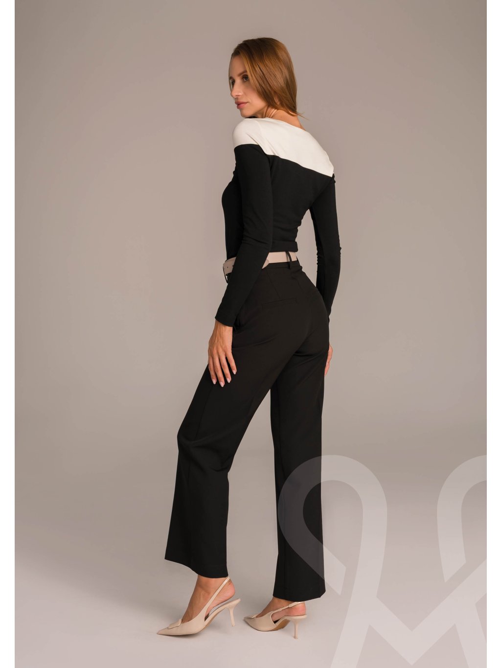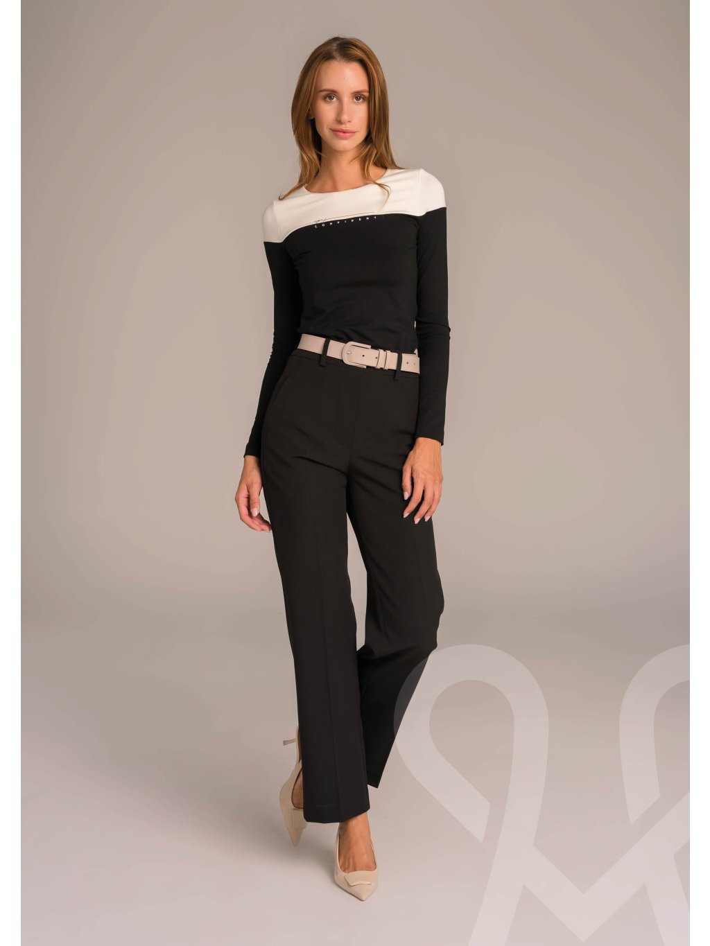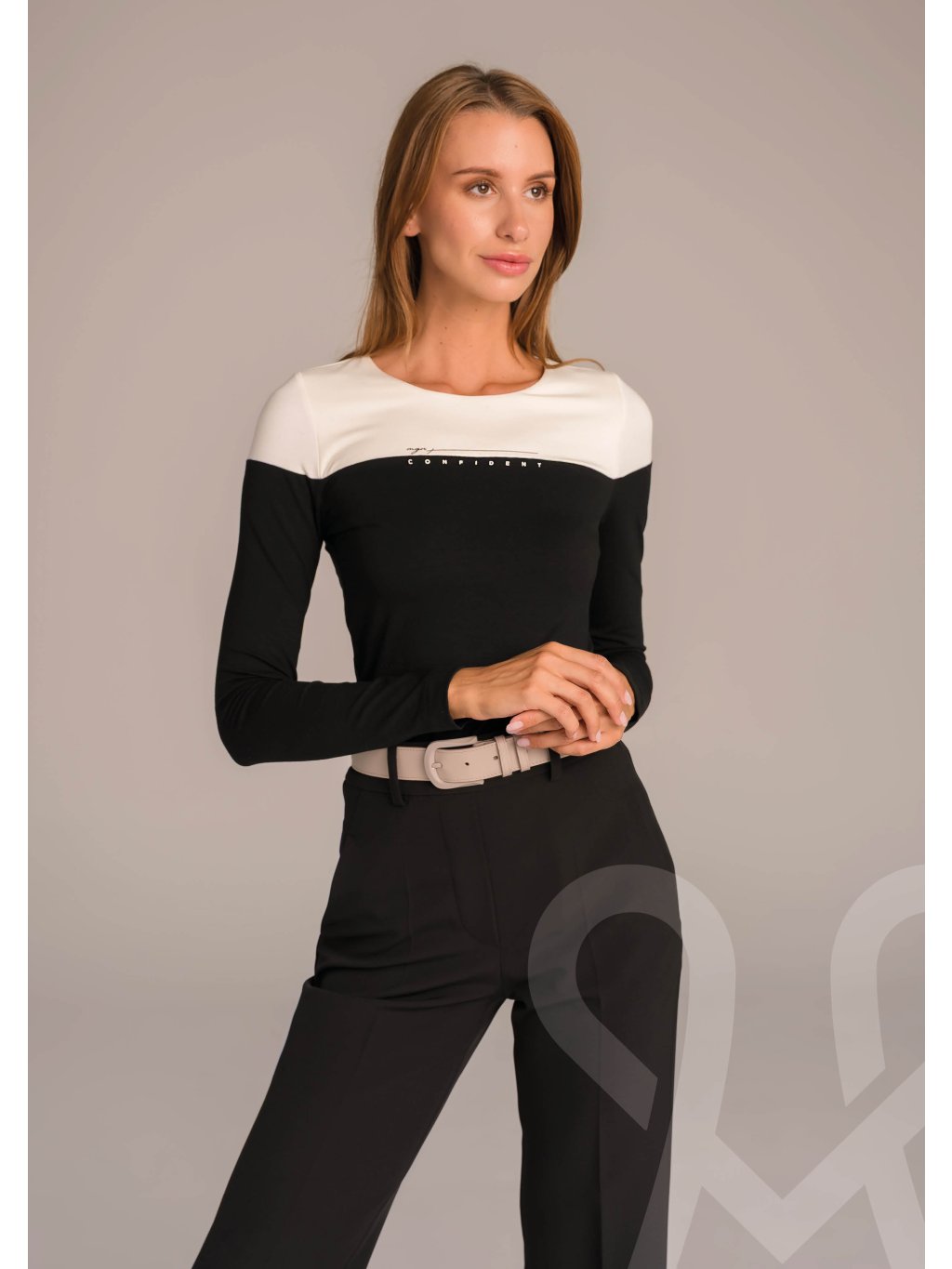 MAGENTA dámsky top čiernej farby predelený v hornej časti bielou látkou doplnený názvom značky. Dlhé rukávy a priliehavý strih sú správnou voľbou na každodenné nosenie. Skvelý do kombinácie s čiernymi nohavicami alebo sukňou, doplniť opaskom.