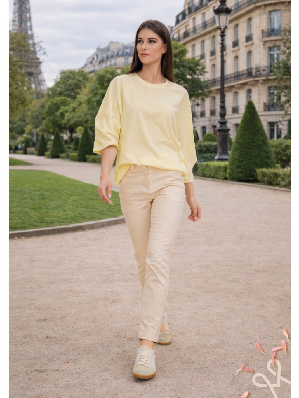 Vneste do svojho šatníka svetlo a ľahkosť s týmto minimalistickým topom v jemnom citrónovom odtieni. Je navrhnutý pre ženu, ktorá miluje slobodu pohybu, no odmieta robiť kompromisy v štýle.