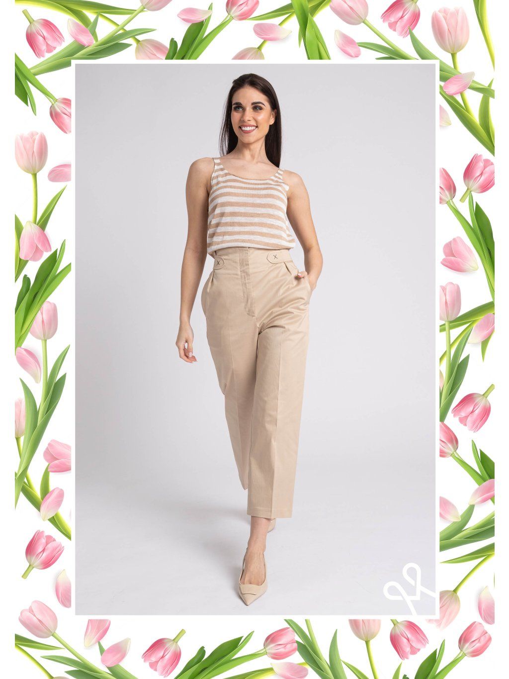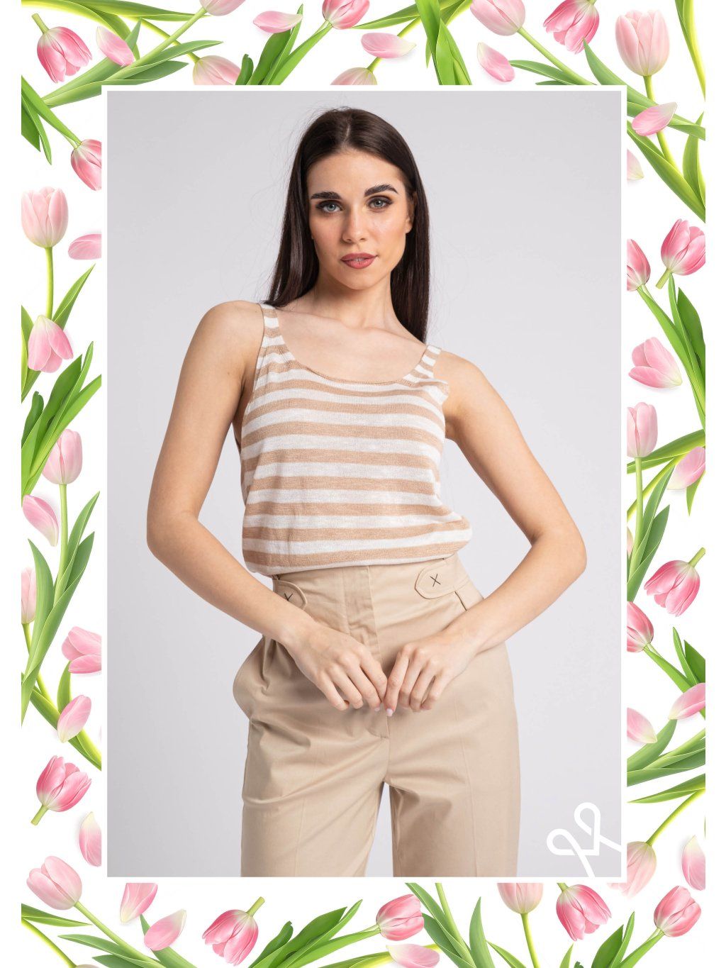 Dámsky MAGENTA top s prúžkami je ideálnou voľbou pre každodenný, no zároveň štýlový outfit. Príjemný a mäkký materiál zabezpečuje pohodlie počas celého dňa, zatiaľ čo jemný béžovo-biely prúžkovaný vzor pôsobí elegantne a nadčasovo.Bezrukávový strih je perfektný na teplé dni alebo na vrstvenie pod sako či kardigán. Klasický okrúhly výstrih a mierne priliehavý, no stále pohodlný strih krásne zvýraznia ženskú siluetu. Top sa ľahko kombinuje s nohavicami aj sukňou, vďaka čomu sa stane univerzálnym kúskom vo vašom šatníku.