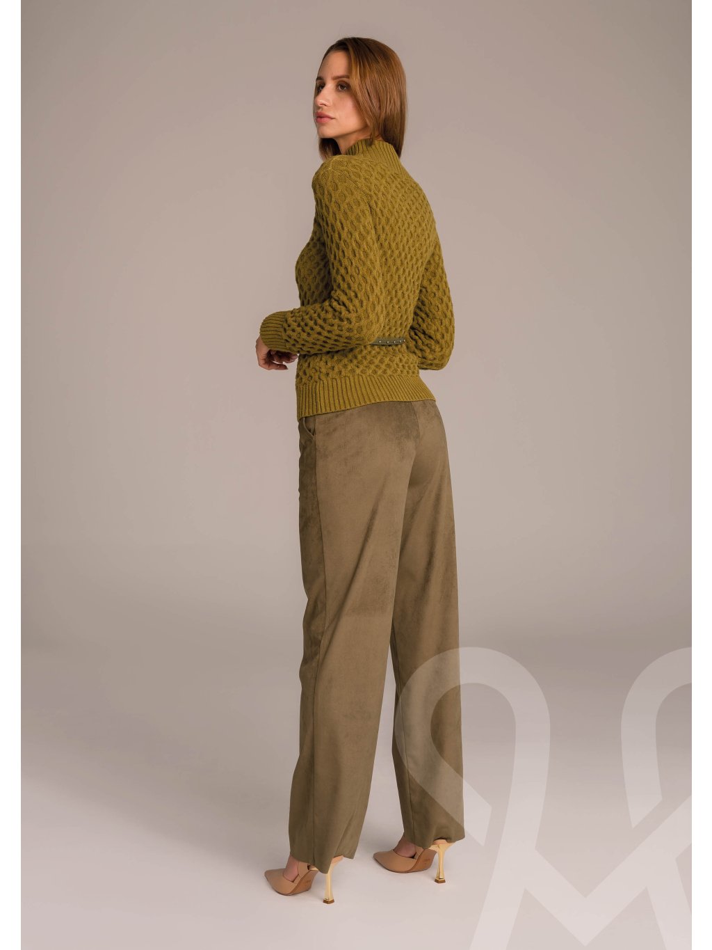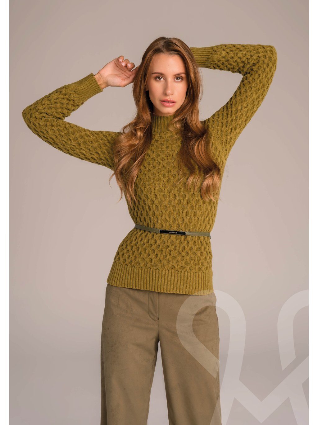 MAGENTA plenený rolákový top olivovej farby. Má krásny svieži a nežný vzhľad. Pletené vzory na prednej strane sú príjemné a jemné zakončenie z nej robia moderný a nadčasový kúsok vhodný na každé nosenie. Výborne vyzerá s nohavicami alebo sukňami z našej kolekcie.